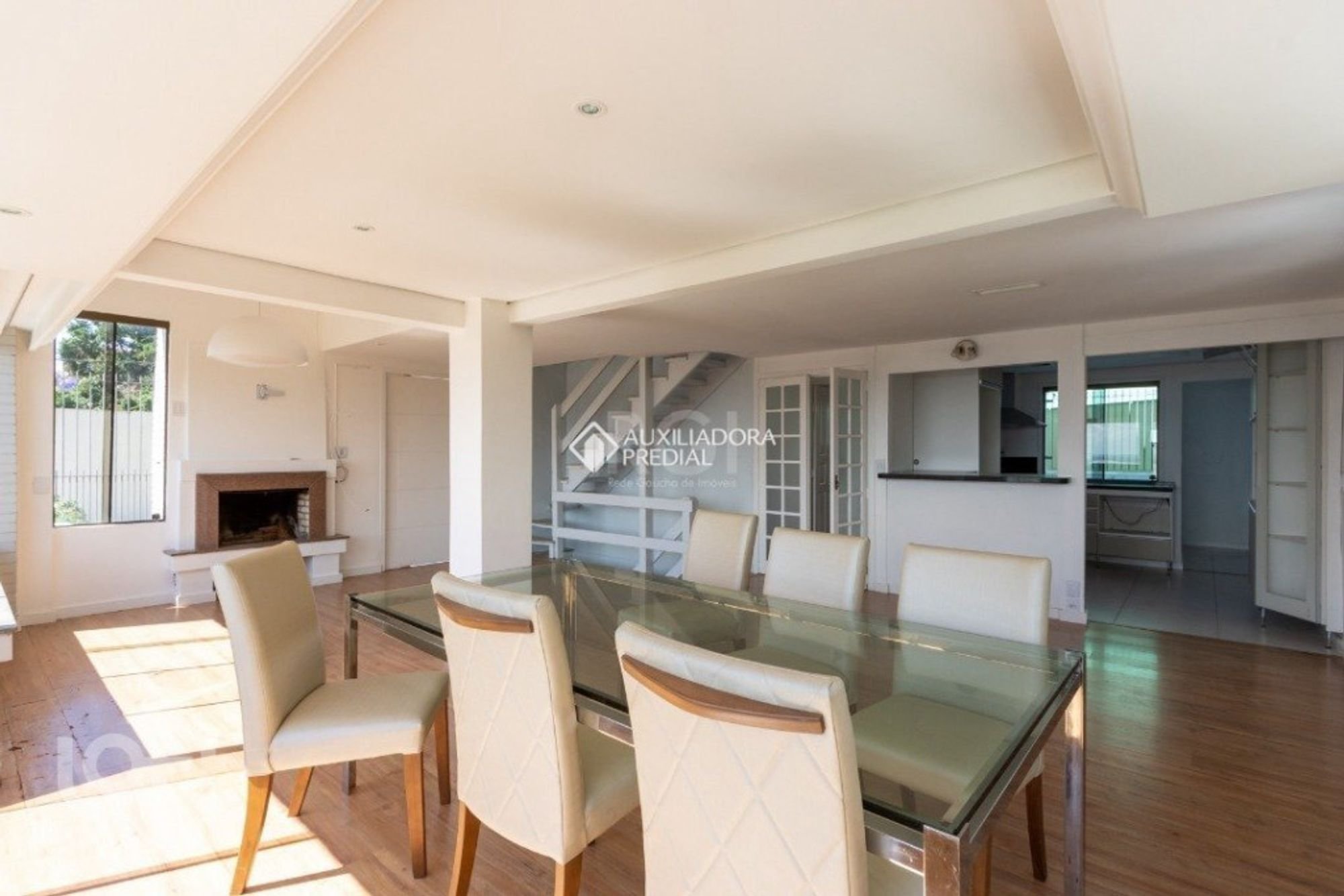 Casa em condomínio fechado, estilo americano, de esquina com vista para a cidade, composta por 5 dormitórios, sendo 2 suítes térrea, sendo uma com closet. Living para dois ambientes com lareira, cozinha montada e integrada com sala de jantar, com linda vista para o Rio Guaíba, lavabo e despensa. Na parte superior a casa conta com mais 3 dormitórios, sendo 1 suíte com sacada, vista panorâmica e com excelente posição solar. No térreo a casa conta com um espaço gourmet com churrasqueira, piscina, dependência de empregada completa que também serve de escritório, sala de jogos/tv, lavanderia, e jardim, além das vagas coberta para 2 carros. Condomínio com total infraestrutura, portaria 24 hs, ronda, cerca elétrica, sistema de TV, quadra de esportes, quiosque com churrasqueira, quadra de bocha, playground e salão de festas.