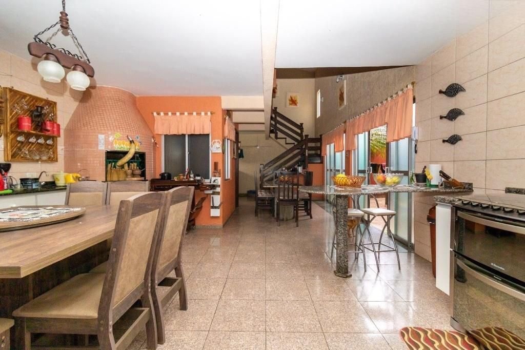 Código do Imóvel: CM1737704-2 Sobrado 4 Dormitórios - Bacacheri - Curitiba 398 m² de área construída. Semi Mobiliado 22 cômodos sendo: PISO TÉRREO: Hall de entrada com piso de mármore e cascata. Sala de entrada. Quartinho extra. Sala de jantar e estar. Banheiro social com box blindex. 2 quartos com piso laminado. PISO SUPERIOR: Suíte com closet, armários e box blindex. Sala de estar com sacada. Banheiro social com box blindex. Escritório com armários. Sala de fundos. Quarto extra. SOBRADO FUNDOS (EDICULA) Cozinha espaçosa com armários planejados e churrasqueira. Lavanderia com armários. Lavabo com pia em mármore. Escada em madeira. PISO SUPERIOR: Suíte com box blindex. Sala de estar. Depósito. Mais Características: Área de Serviço, Armários Embutidos, Banheiro Social, Churrasqueira, Closet, Copa, Cozinha, Dispensa, Dormitório com Armários, Edícula, Escritório Sacada, Sala com Armários, Sala de Jantar, Sala de TV, Quintal, Piso Lavabo e Estar Íntimo: Porcelanato, Piso Dormitorio: Laminado, Face: Norte Imóvel em excelente condição, e será vendido Semi Mobiliado! Total 22 cômodos + sacada + espaços extras + garagens. (2 suítes, 1 cozinha grande com edícula, 6 salas, 1 lavabo, 2 banheiros, 4 quartos, 1 lavanderia, 2 escadarias, 1 escritório, 1 hall de entrada com fonte, 1 despensa ou depósito) Total 400 m² Privativo. Com um espaçoso terreno, um jardim maravilhoso e uma área construída de 398,00 m² Possui ambientes amplos e confortáveis para que os seus dias em casa sejam o mais proveitosos possíveis.
