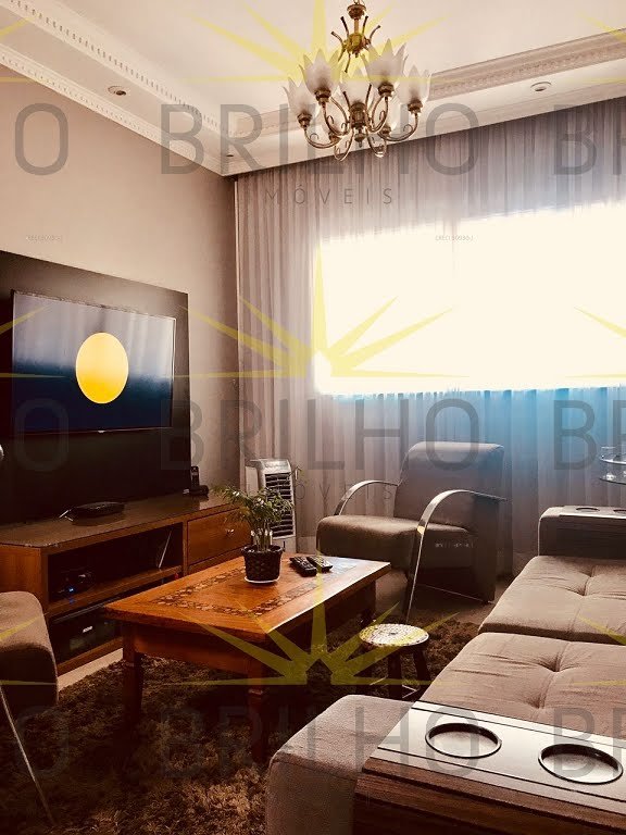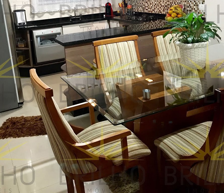 Sobrado com 3 dormitórios, sendo 1 suíte e ar-condicionado em um dos quartos, sala, cozinha, 2 banheiros e 4 vagas de garagem. Móveis embutidos nos quartos.