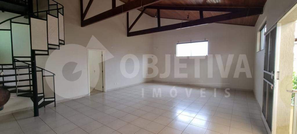 Casa em estilo sobrado disponível para venda no bairro Santa Mônica, em Uberlândia. O imóvel conta com 360 m² de terreno e aproximadamente 300 m² de área construída, distribuídos em 7 quartos, sendo 3 suítes. A casa possui cozinha completa com armários planejados, 3 salas de jantar, sala de TV, varanda gourmet com churrasqueira, depósito, lavanderia, banheiro social com box, escritório, 2 áreas verdes, hall de entrada, boiler, banheira de hidromassagem, armários nos quartos, além de 4 vagas de garagem cobertas. O imóvel também conta com sistema de gás encanado com 3 pontos distribuídos em locais diferentes.