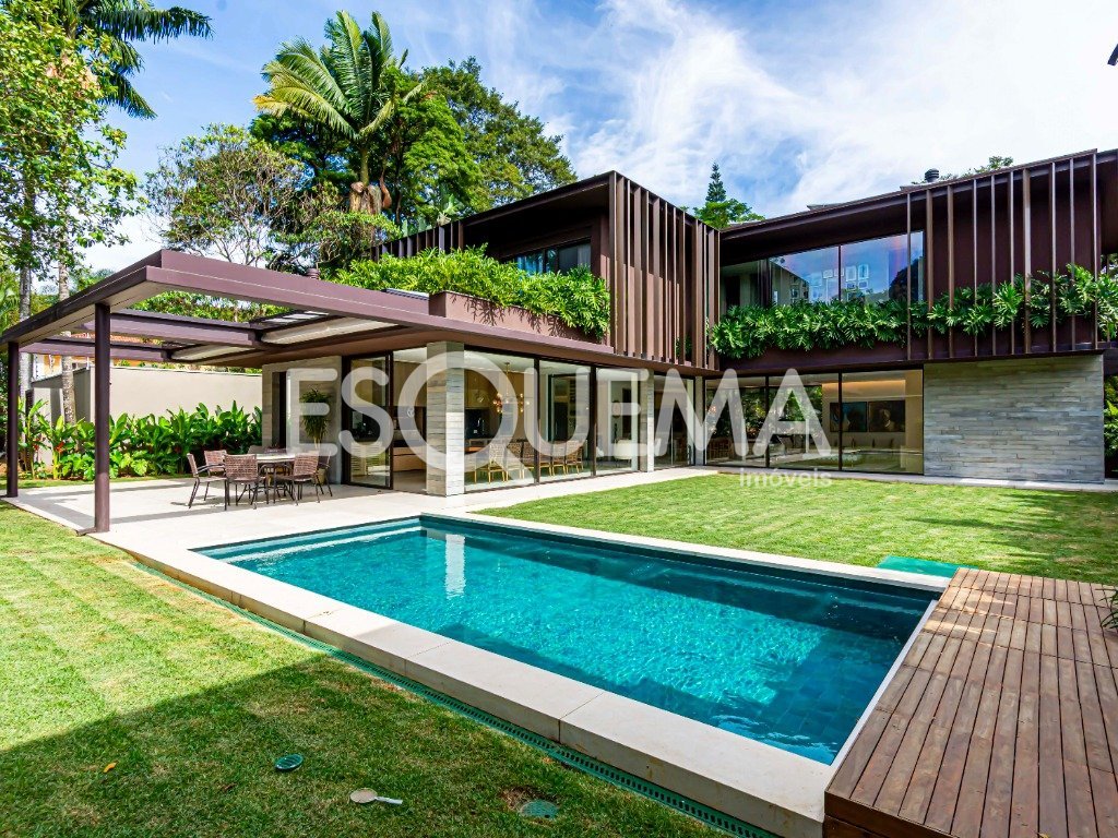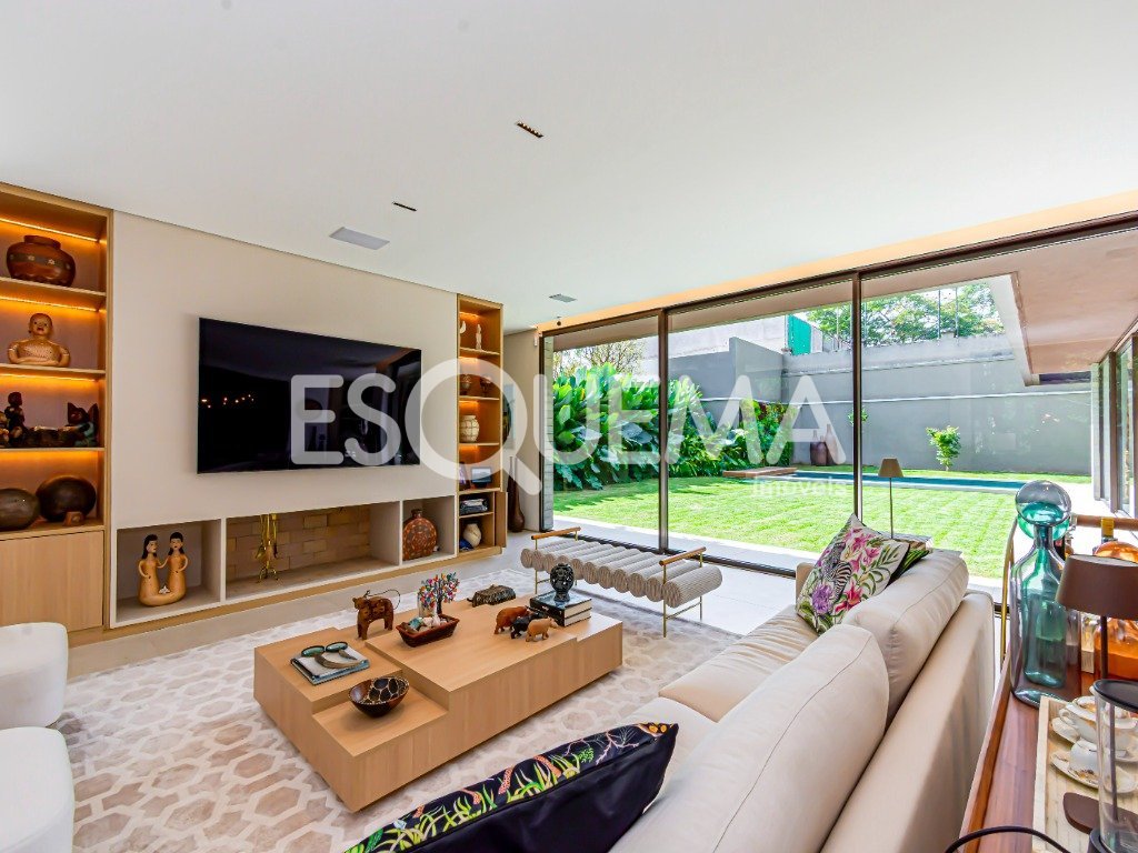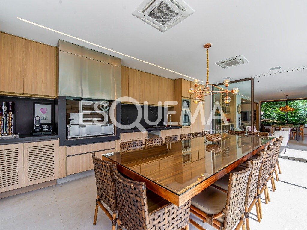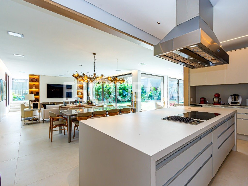 Casa contemporânea com projeto de arquiteto e paisagismo que integra natureza e bem-estar aos ambientes. Os espaços amplos e envidraçados garantem iluminação natural em todos os cômodos. A área social conta com living de pé-direito duplo com lareira, sala de jantar, cozinha equipada com eletrodomésticos importados e marcenaria de alto padrão, além de ambientes de serviço completos. Oferece acessibilidade total, com elevador e portas largas. Na área íntima, são 3 suítes, incluindo a principal com banheiros individuais, closet duplo com sistema anti-mofo e janelas com isolamento acústico. Entre os diferenciais, estão a piscina aquecida, espaço para massagem, sauna, sala de ginástica, aspiração central, automação, portas blindadas, painéis solares, poço artesiano, reuso da água da chuva, sistema de segurança e 6 vagas de garagem.
