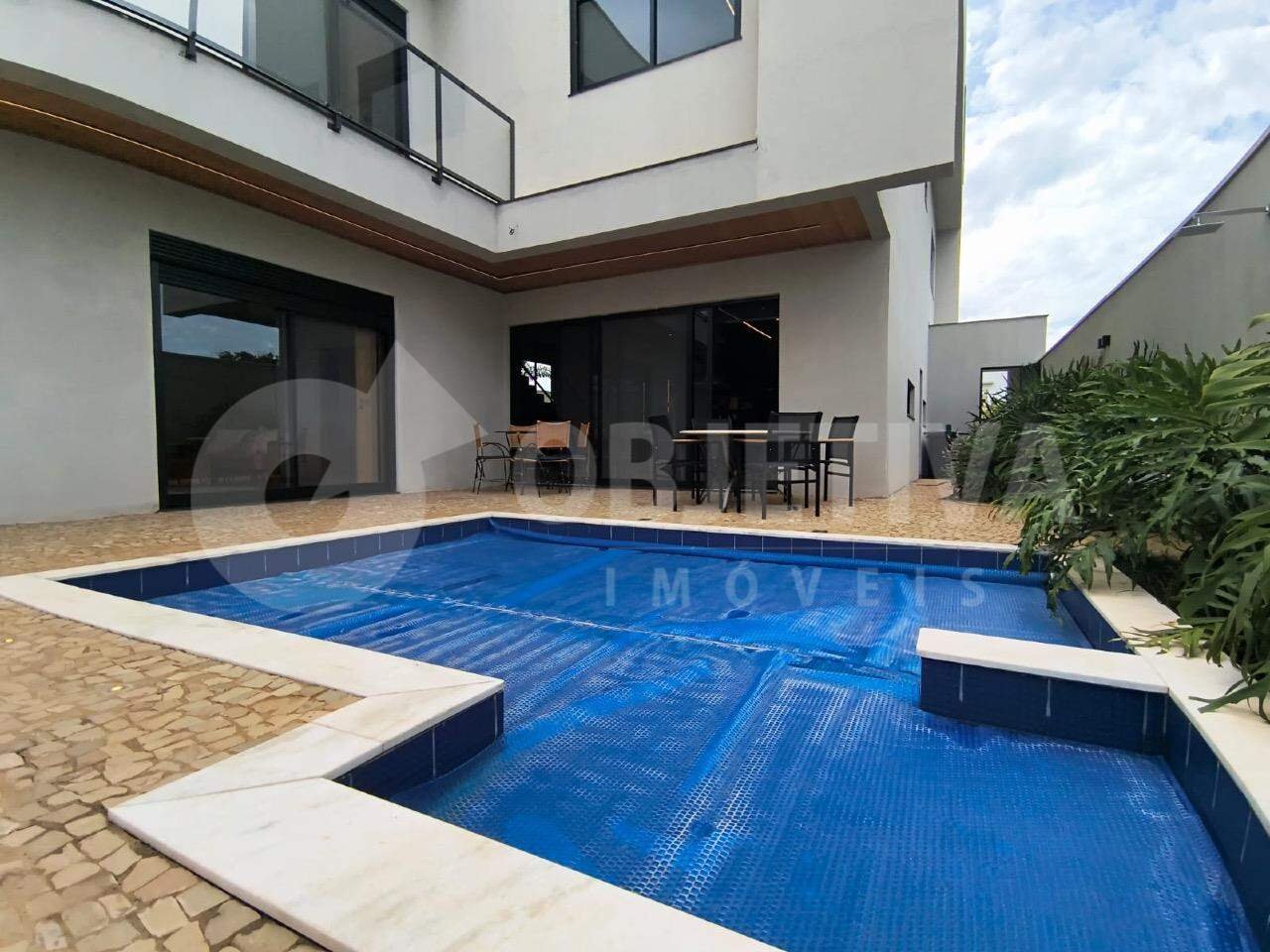 Linda casa estilo sobrado disponível para aluguel no Condomínio Jardim Versailles, em Uberlândia. Condomínio de altíssimo padrão localizado na zona sul da cidade. Imóvel montado, decorado e com fino acabamento. São 308m² de construção em terreno de 401m², dispondo de 3 suítes, sendo a máster com closet, cubas e duchas duplas. Salas amplas e integradas, home cine exclusivo, escritório montado, cozinha gourmet com ilha, lavanderia e despensa. Área de lazer com piscina aquecida e tratamento em ozônio, vestiário, paisagismo completo, aquecimento solar, energia fotovoltaica, automação, irrigação automática, climatização completa, louças e metais de primeira linha e iluminação 100% em LED. Garagem para 4 veículos, sendo 2 vagas cobertas. Imóvel disponível para aluguel de porteira fechada (Mobiliado).