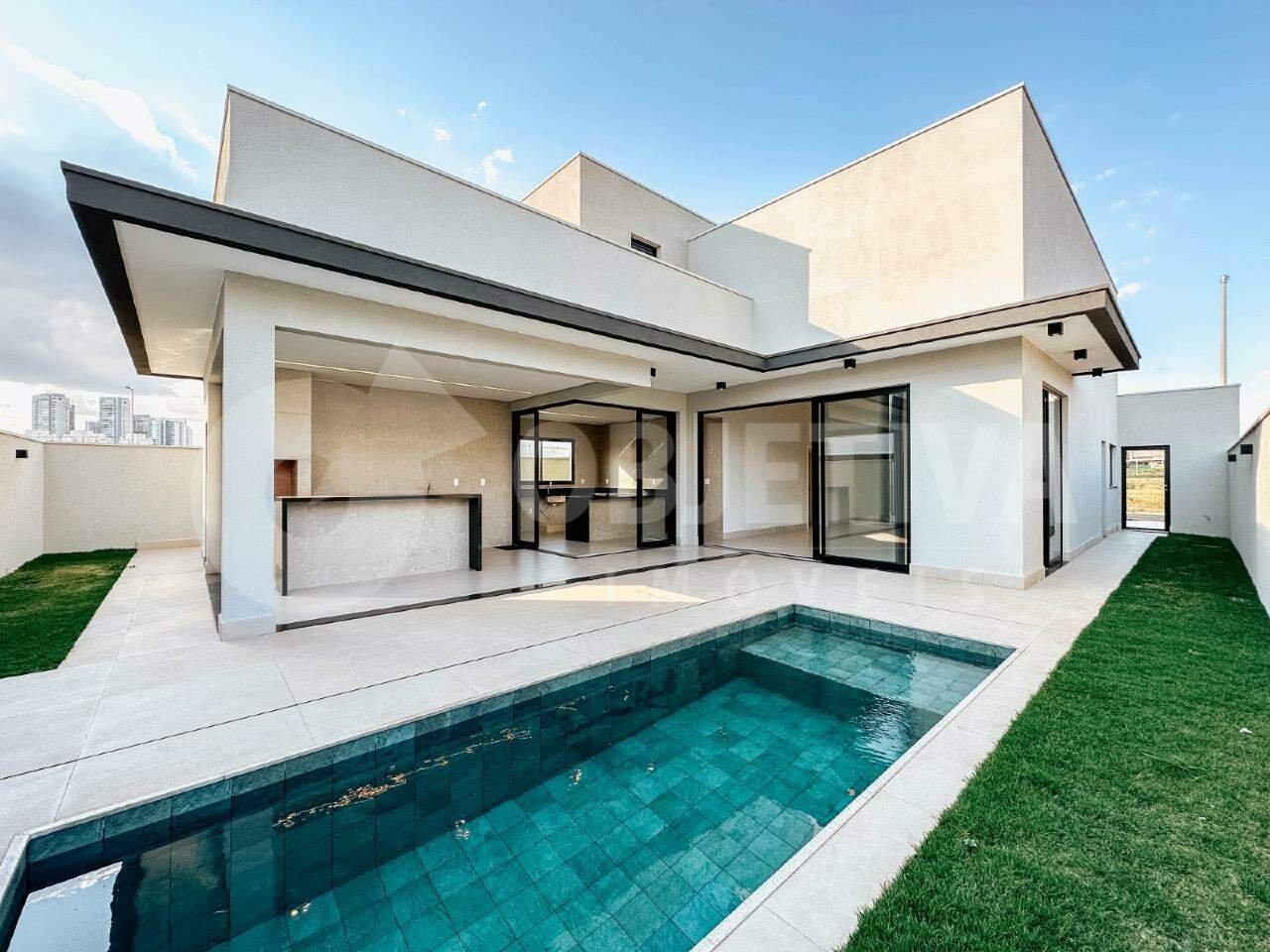 Belíssima casa térrea no setor sul de Uberlândia, com um projeto moderno e acabamento de altíssima qualidade. Todos os espaços são muito bem definidos e aproveitados, proporcionando a cada ambiente exclusividade e bem-estar. O terreno possui uma área total de 420m² e área construída de 215m². A garagem conta com 2 vagas cobertas e 2 descobertas, sala ampla com pé direito duplo, escritório, lavabo social decorado, cozinha integrada, e 3 quartos, todos suítes, sendo a principal master com closet (2 quartos semi-suítes em estilo americano). A área gourmet tem varanda com balcão em ilha e churrasqueira a carvão, além de uma piscina revestida em porcelanato de primeira qualidade, com sistema de aquecimento, iluminação, hidromassagem e automação. Também há depósito com acesso externo, lavanderia separada, banheiro completo na área de lazer, sistema de energia fotovoltaica, persianas automatizadas, iluminação especial personalizada, infraestrutura de ar-condicionado embutido, e banheiros com box e acessórios. A fachada é moderna e muito bonita.
