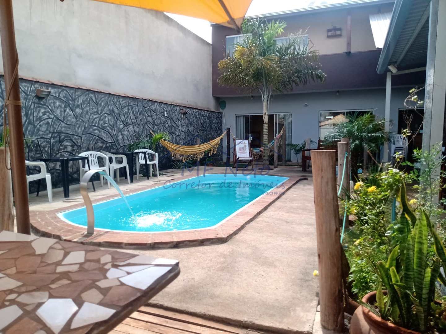 Residência de lazer ou residência de dois andares: No térreo, há um dormitório com porta blindex que proporciona acesso direto à piscina, um banheiro e uma área integrada de sala e cozinha com porta blindex, além de uma lavanderia coberta. No andar superior, encontra-se um dormitório com porta blindex e acesso à varanda, um banheiro, uma área combinada de sala e cozinha com porta blindex, lavanderia interna, espaço para churrasco, piscina e duas vagas de garagem. Permuta parcial aceita apenas por terrenos localizados no Alto das Árvores.