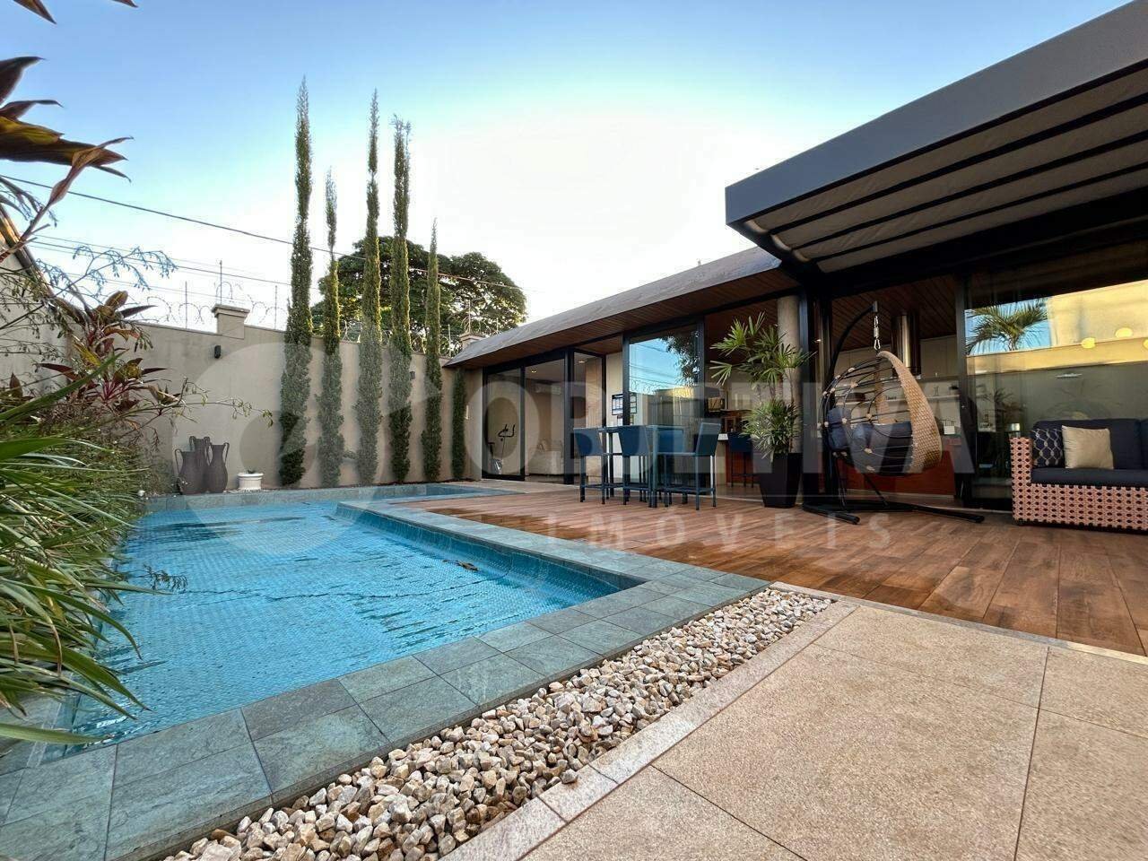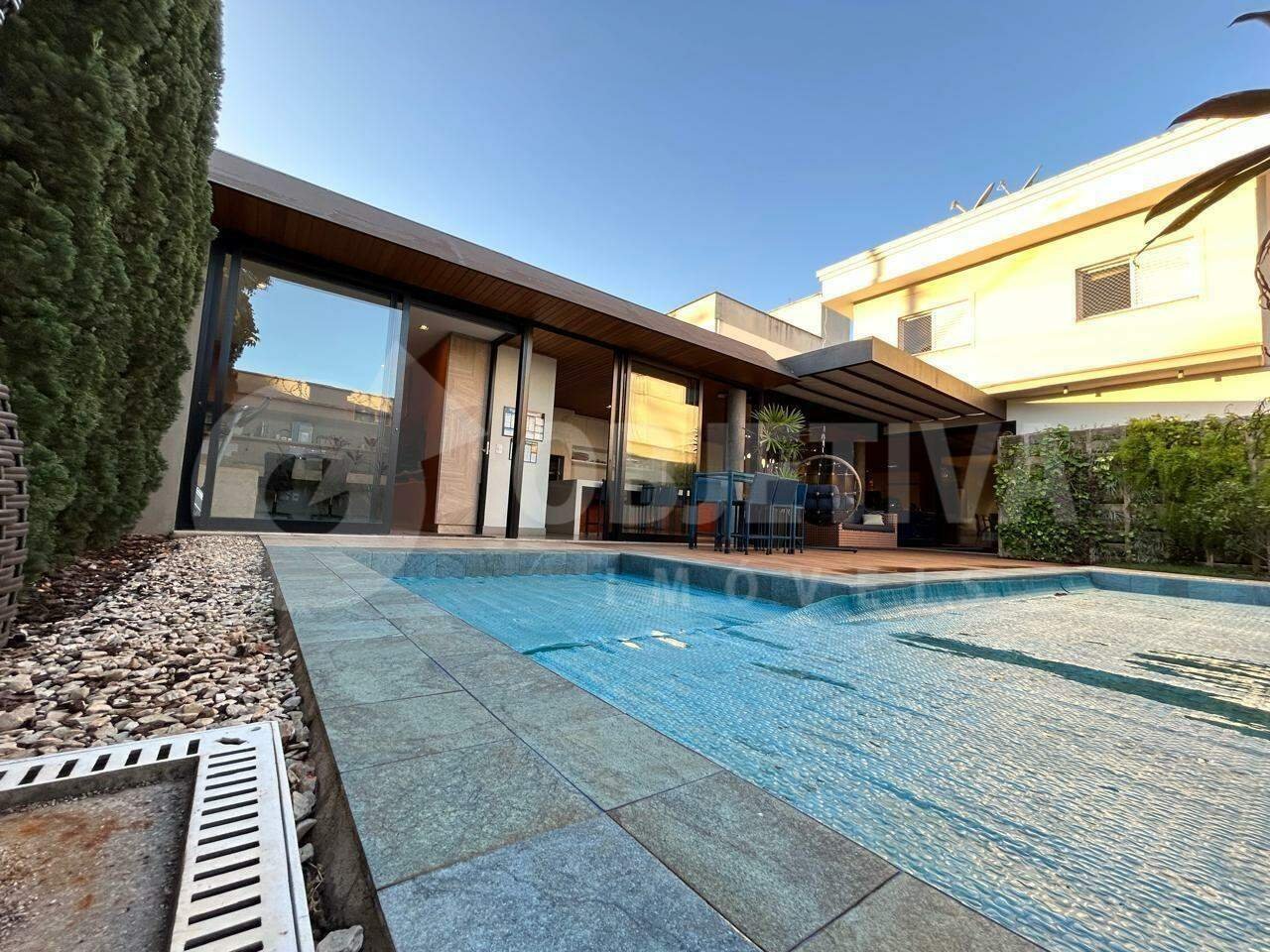 Casa nova em condomínio fechado disponível para venda de porteira fechada, totalmente mobiliada. O imóvel possui 319 m² de terreno e aproximadamente 270 m² de área construída, com 3 suítes no andar superior, todas com armários, cortinas e ar-condicionado, sendo a suíte máster com closet. No pavimento térreo há uma sala ampla em dois ambientes, cozinha completa com armários, lavabo, escritório e área gourmet com ilha equipada com cooktop, exaustor tipo coifa, bancada em granito com pia em inox e churrasqueira à carvão, tudo integrado à área de lazer com piscina, banheiro externo e som ambiente em todo o piso térreo. A piscina conta com aquecimento solar, o imóvel possui sistema de energia fotovoltaica com produção de 850 quilowatts por mês e instalação para carregador de carro elétrico. São 2 vagas de garagem coberta, piso em porcelanato, armários planejados, paisagismo bem cuidado e sol da manhã na área da piscina. O condomínio oferece portaria 24 horas e monitoramento por câmeras de segurança.
