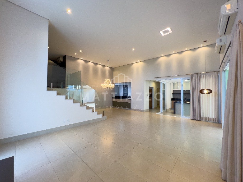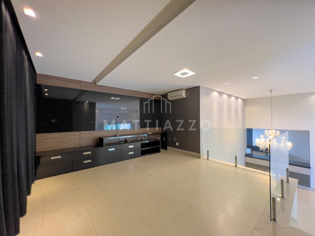 Belíssima casa com mezanino, além de acabamentos de alto padrão no condomínio. O imóvel contém: - 3 Suítes, sendo a máster com closet, - Sala para 2 ambientes, - Lavabo, - Home theater, - Cozinha americana, - Espaço gourmet completo, - Lavanderia, - Piscina, - Móveis planejados, - Porcelanato, - Esquadrias de alumínio, - Garagem para 2 veículos. Venha conversar conosco.