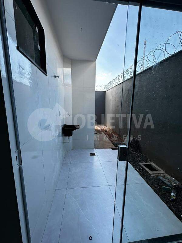 Sobrado novo disponível para a venda no bairro Minas Gerais em Uberlândia. São 125m² de terreno com 130 metros quadrados de construção bem distribuídos. Possui 03 quartos, sendo um no térreo e 2 suítes no segundo piso, banheiro social, 2 salas, sacada, cozinha e lavanderia separada. Rodapé embutido e todas as janelas veneziana de alumínio. Acabamento todo em porcelanato. 2 vagas de garagem.
