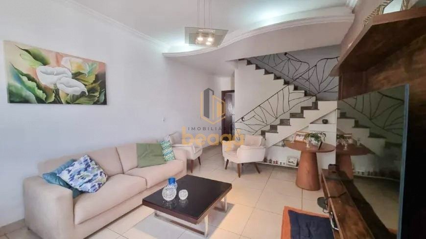 CASA GEMINADA | 3 QUARTOS | 2 VAGAS | CASTELO - Primeiro Pavimento: - Sala para 2 ambientes; - Lavabo; - Cozinha e copa integradas, com bancada em granito e armários. - Área gourmet: - Fogão e forno à lenha; - Churrasqueira; - Piscina; - Sauna; - Banheiro; - Lavanderia. Segundo Pavimento: - 03 Quartos, sendo 01 suíte com varanda fechada e 01 quarto com sacada; - Banho social; - 2ª Varanda fechada. 2 vagas de garagem em linha e uma coberta.