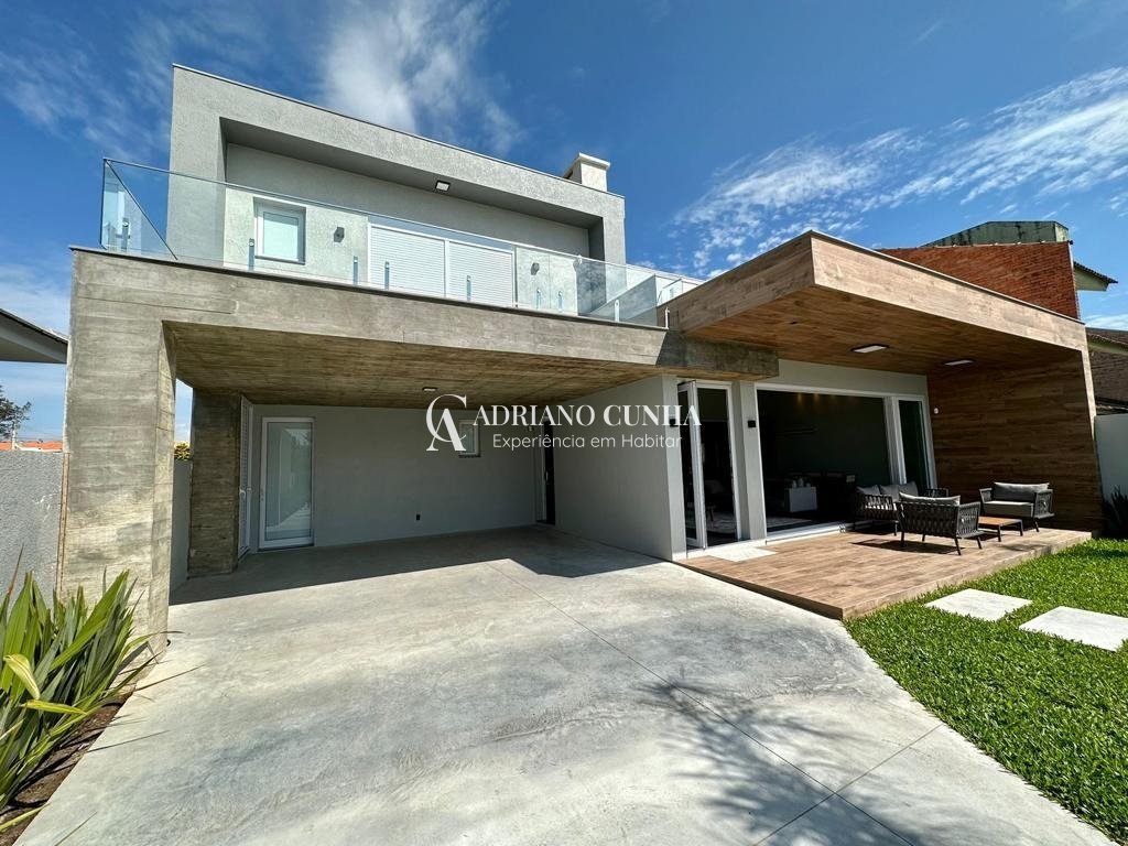 Sobrado moderno de alto padrão com 243,05 m² privativos Características do imóvel: 04 suítes, sendo 01 térrea Lavabo Sala de estar com lareira Sala de jantar integrada Cozinha americana com churrasqueira Área de serviço Garagem coberta para 02 carros Piscina Projeto contemporâneo com acabamentos de alto padrão Esquadrias em PVC Água quente Aberturas automatizadas Pátio amplo, totalmente murado e cercado Ideal para quem busca conforto, modernidade e praticidade em um único imóvel.
