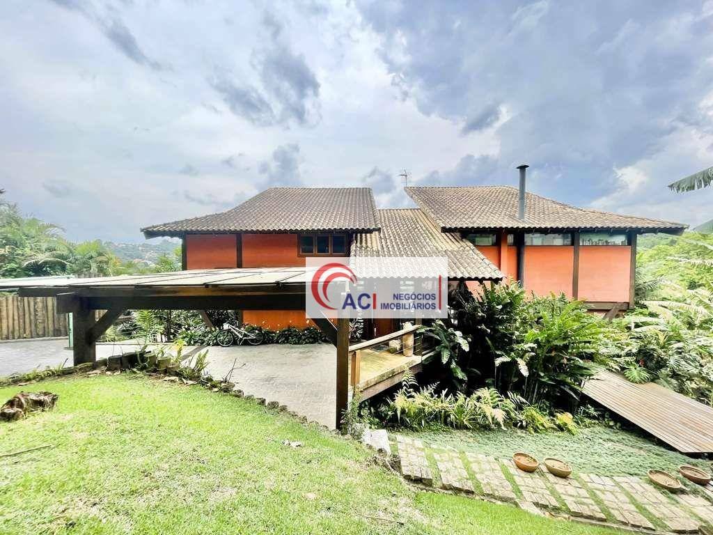 Essa casa rústica parece ser um verdadeiro refúgio de luxo e conforto! Aqui estão alguns pontos que chamaram minha atenção: - Arquitetura única: O projeto foi desenvolvido respeitando a topografia do terreno, com uma estrutura de madeira que se integra perfeitamente ao ambiente natural. - Materiais de alta qualidade: A casa foi construída com materiais nobres, como madeira Itaúba, Jequitibá Rosa e Angelim Pedra, que dão um toque de sofisticação e elegância ao imóvel. - Vista espetacular: A casa tem uma vista incrível para a Área de Preservação Permanente (APP), o que deve ser um verdadeiro privilégio para os moradores. - Espaços amplos e arejados: A casa tem espaços amplos e arejados, com janelas grandes e varandas que permitem uma ótima iluminação natural. - Jardim tropical: O jardim foi projetado com paisagismo tropical, com árvores frutíferas e uma variedade de plantas que devem criar um ambiente exuberante e acolhedor.