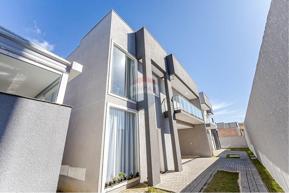 Código do Imóvel: CM1724828-3. Com projeto arquitetônico moderno e uma execução que privilegia luz, ventilação e muito conforto, este sobrado de 177 m² privativos entrega um padrão construtivo abundante, ideal para quem busca privacidade em um condomínio com apenas duas unidades. A fachada possui painéis de vidro, o que garante uma claridade excepcional em todos os ambientes. A casa é extremamente arejada e iluminada, aproveitando o sol durante todo o dia graças à sua face solar e à ventilação cruzada proporcionada pelo projeto. O térreo impressiona pela integração total entre sala, cozinha planejada, hall de entrada e área de jantar, criando amplitude e fluidez visual. Os acabamentos unem porcelanato na parte inferior e laminado na superior, a lavanderia possui fechamento em vidro e conta com o sistema de aquecimento de água para cozinha e banheiros. A cozinha clean foi planejada e traz uma ampla bancada e armários até o teto com iluminação funcional. Uma escada em granito claro e vidro translúcido trazem charme e criam um ambiente visualmente leve e espaçoso. No piso superior, 3 dormitórios, todos com espaço para closet; a suíte já conta com closet mobiliado com iluminação e uma saída para desfrutar da sacada. Há também um ambiente extra versátil que pode ser configurado como sala íntima, escritório ou um quarto dormitório, conforme a necessidade da família. Este sobrado representa o equilíbrio entre design arquitetônico, qualidade construtiva ampla e funcionalidade para se viver muito bem. DADOS DO IMÓVEL: Área privativa: 177 m² Área total: 182m² Face do sol: Norte / Leste Número de quartos: 3 quartos, sendo uma suíte Vagas de garagem: 2 exclusivas cobertas Condomínio de 2 sobrados IPTU/Anual: 3.554,00 Valor condomínio: não há Proximidades: Shopping Palladium - 5 minutos Shopping Boulevard - 7 minutos Festival Linha Verde - 3 minutos Supermercado Condor - 3 minutos Universidade UniDomBosco - 3 minutos Colégio Martinus - 12 minutos PUCPR - 13 minutos Recreativo praças da Av. Wenceslau Braz - 1 minuto Escola de futebol - 1 minuto