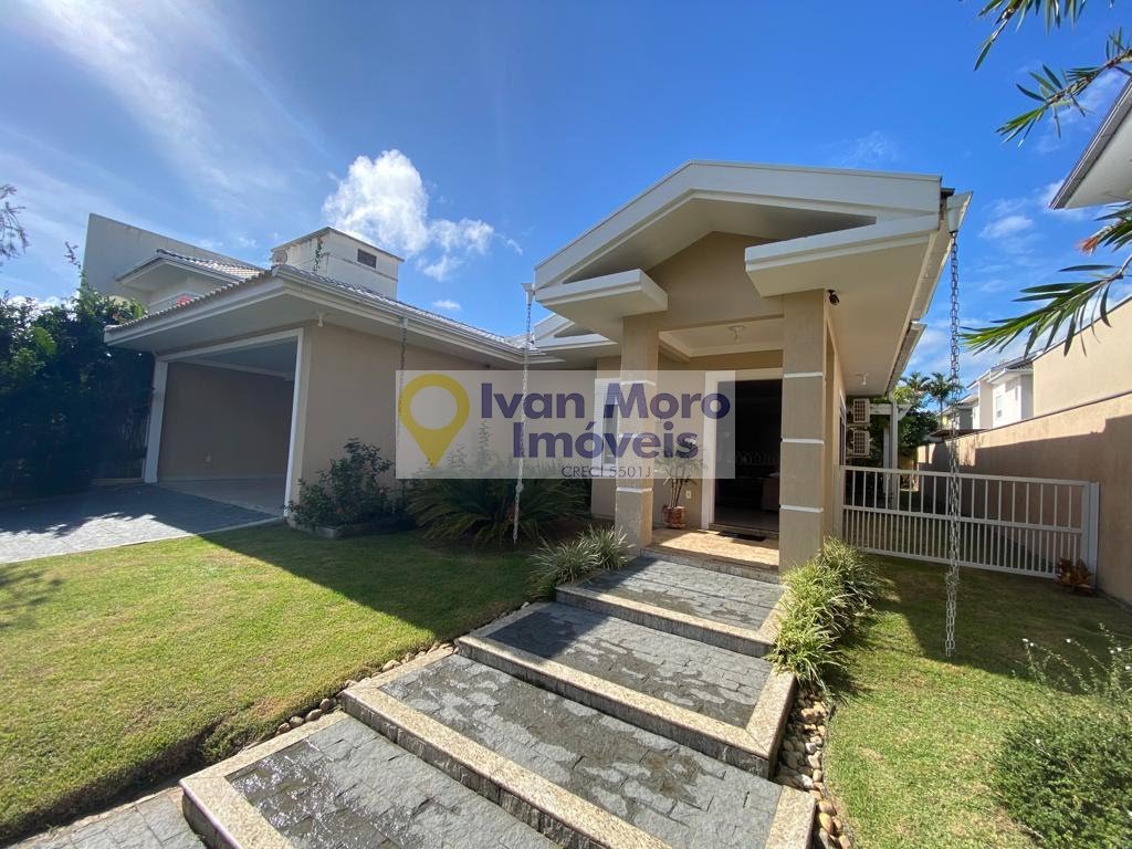 Casa à venda na Cachoeira do Bom Jesus, em loteamento com acesso monitorado, área construída de 204m², térrea, terreno de 450m², espaço com piscina e churrasqueira, são 3 suítes, 4 vagas de garagem sendo 2 cobertas, total 4 banheiros com aquecimento solar, sala de estar e jantar, cozinha, área de serviço, sistema de segurança. Casa oferece condições de financiamento.
