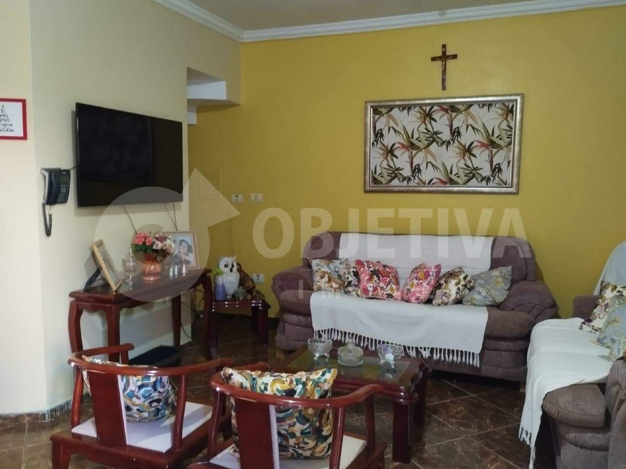 Casa à venda no bairro Cidade Jardim, em Uberlândia, estilo sobrado com dois pavimentos, 272,21 m² de área construída em um terreno de 250 m², medindo 10m de frente por 25m de fundo. O imóvel conta com três quartos, sendo uma suíte, um banheiro social no segundo piso, um lavabo no primeiro piso e um banheiro na sala de som. Possui sala de estar, sala de jantar, cozinha, área gourmet com churrasqueira, lavanderia no segundo piso e quatro vagas de garagem. - Aceita permuta.