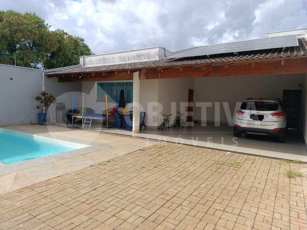 Linda casa disponível no bairro Cidade Jardim em Uberlândia, são 342m² de terreno e aproximadamente 250m² de área construída. Este lindo imóvel dispõe de 3 quartos todos com suíte, armários planejados e cortina de linho, cozinha com pia de granito e armário planejado, sala de tv com painel, sala de jantar com aparador e espelho de 3m, 1 dormitório sem suíte transformado em closet, 1 banheiro social com box de vidro, área de lazer com churrasqueira, lavanderia, piscina, sistema de aquecimento solar com placas fotovoltaicas, sistema de segurança com câmeras, garagem com vaga para 5 carros sendo 2 veículos cobertos e 3 descobertos. Vamos te ajudar na negociação.