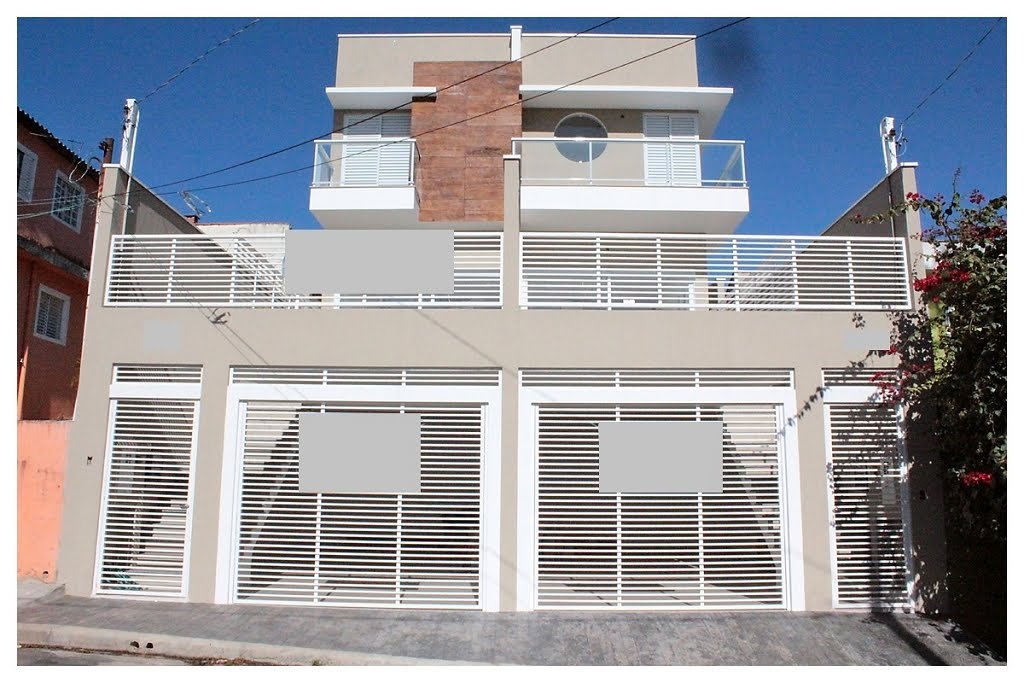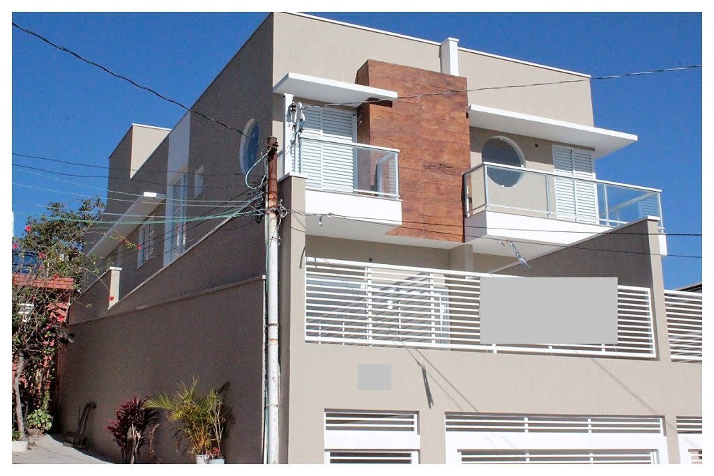 Sobrado geminado novo com 3 dormitórios, sala com 2 ambientes, cozinha americana, lavabo, área de serviço e churrasqueira.