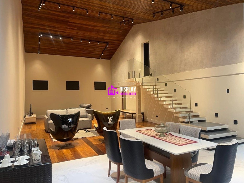 Chácara em condomínio fechado com 2 dormitórios, sendo 2 suítes, 2 salas amplas com acabamento em materiais de primeira linha. Área gourmet com frente de vidro e piscina.