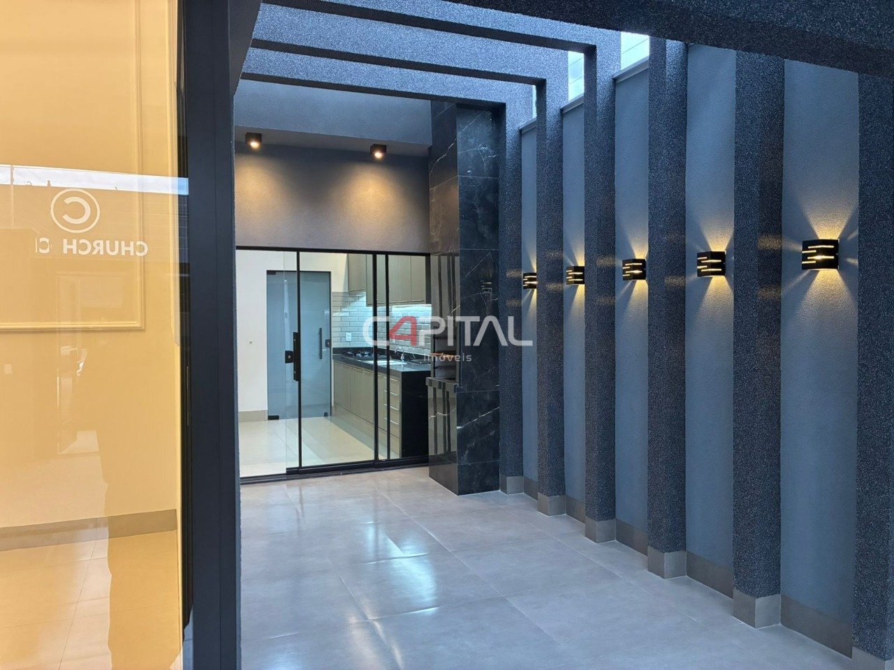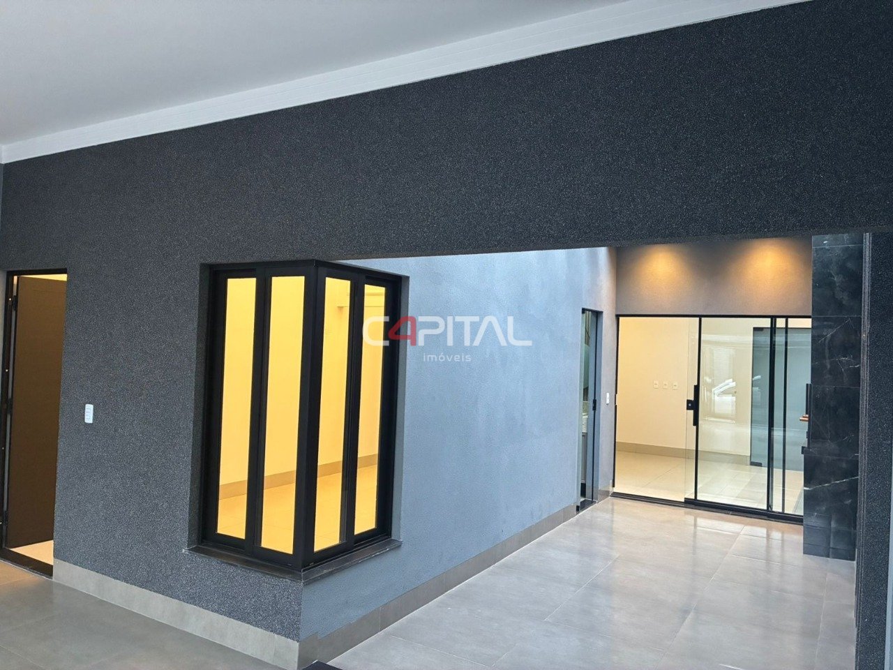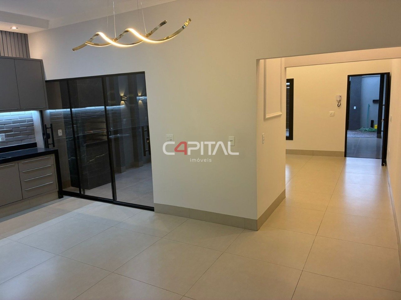 01 Sala 01 Cozinha Planejada 03 Quartos sendo 01 suíte com closet e varanda 02 Banheiros Área de lazer com churrasqueira Garagem coberta para 02 carros Portão eletrônico Interfone Cerca elétrica Área de serviço independente Corredor lateral amplo com jardim Piso em porcelanato e cerâmica Acabamento de primeira linha