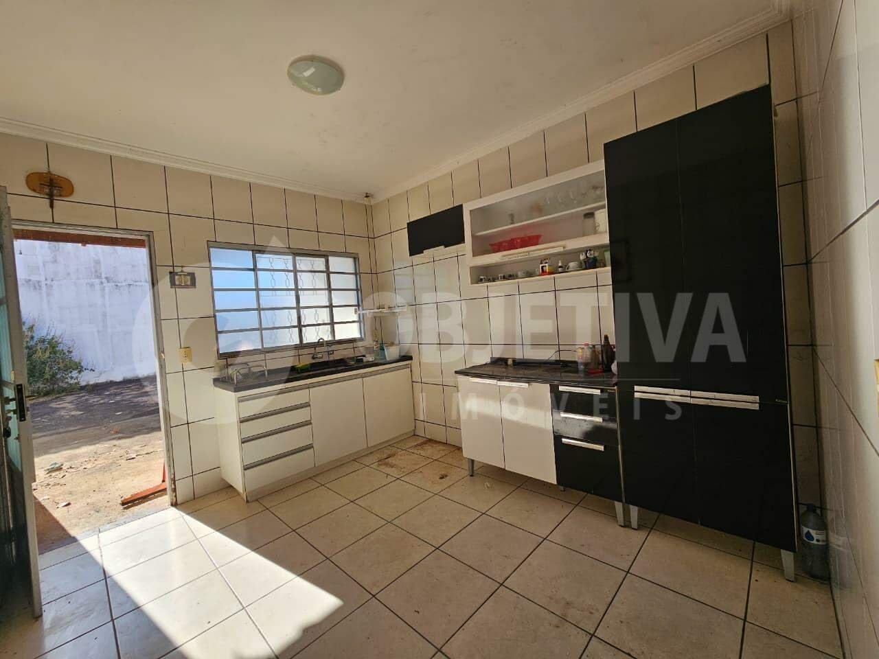 Casa disponível para aluguel no bairro Jardim das Palmeiras, em Uberlândia, com 120m² de área construída, composta por sala ampla, cozinha toda montada com armários, lavanderia, corredor que dá acesso a três quartos, sendo uma suíte com ar-condicionado e cabeceira de cama, um quarto com guarda-roupa, banheiro social com box, armários, espelho e chuveiro. O piso é em cerâmica, conta com placa de energia solar, quintal amplo nos fundos, garagem coberta para três carros, portão eletrônico, alarme e concertina.