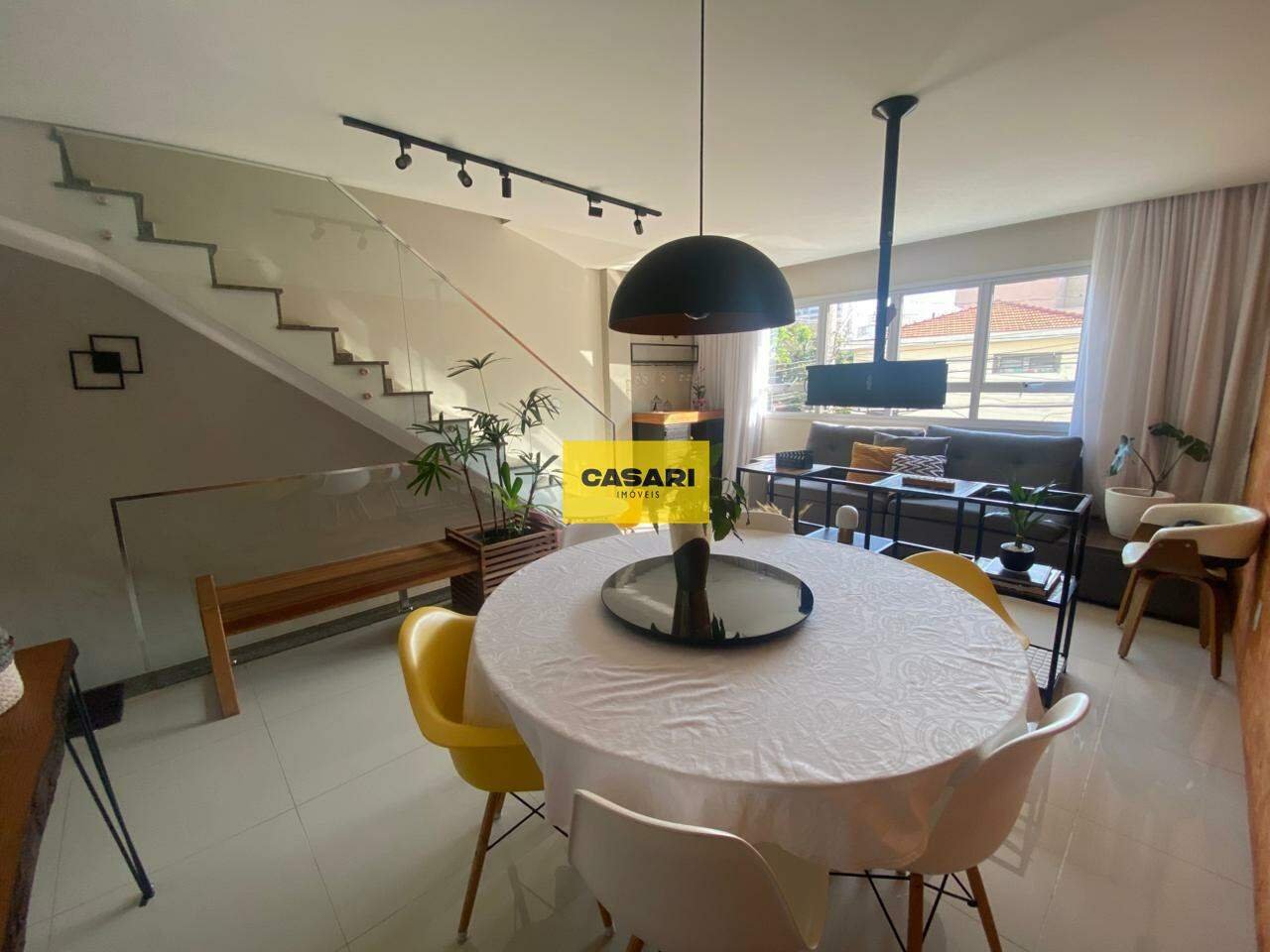 Sobrado geminado, ótima localização, mobiliado com fino acabamento Localizado no bairro Vila Valparaíso, possui 153m2 de área útil distribuídos em garagem para 3 carros com área gourmet, banheiro e depósito. Primeiro andar com sala 2 ambientes, lavabo e cozinha com bancada em Silestone, armário planejado, forno e cooktop, além de um quintalzinho com lavanderia. Segundo andar com 3 dormitórios, sendo 1 suíte com sacada e armários planejados, quarto de solteiro, banheiro e escritório (reversível para um terceiro quarto) - todos equipados com ar condicionado split. Localização privilegiada: próximo ao Centro de Santo André e à divisa com São Bernardo, com fácil acesso às Avenidas Lauro Gomes e Senador Vergueiro. Um imóvel completo, pronto para morar e em uma região de alta valorização!