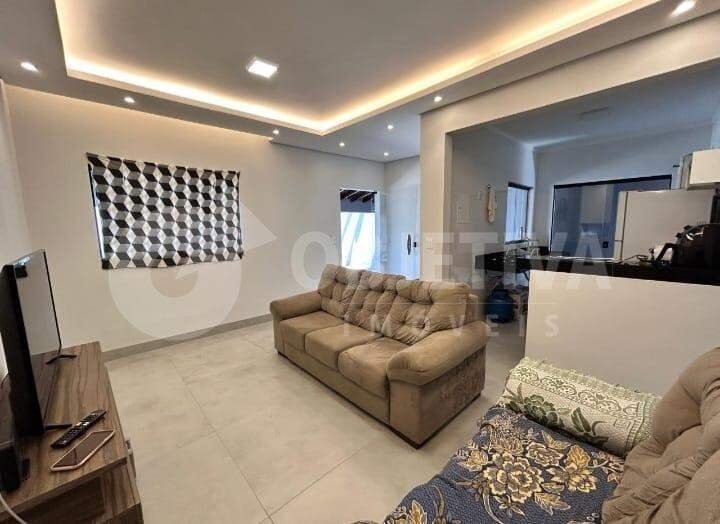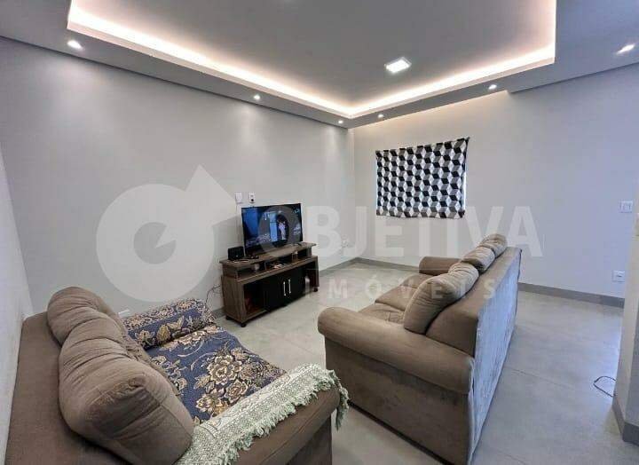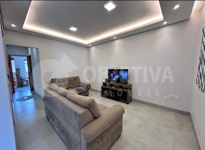 Excelente casa disponível para venda no bairro Jardim das Palmeiras em Uberlândia, são 300m² de terreno e aproximadamente 97m² de área construída que dispõe de 3 quartos, cozinha americana com pia e bancada em granito, sala de tv, banheiro social, área de serviço, varanda na parte da frente da casa e 4 vagas de garagem (sendo 2 cobertas e 2 descobertas). Amplo quintal. Toda parte elétrica trocada, janelas e portas em blindex. Proprietário aceita permuta em carro.