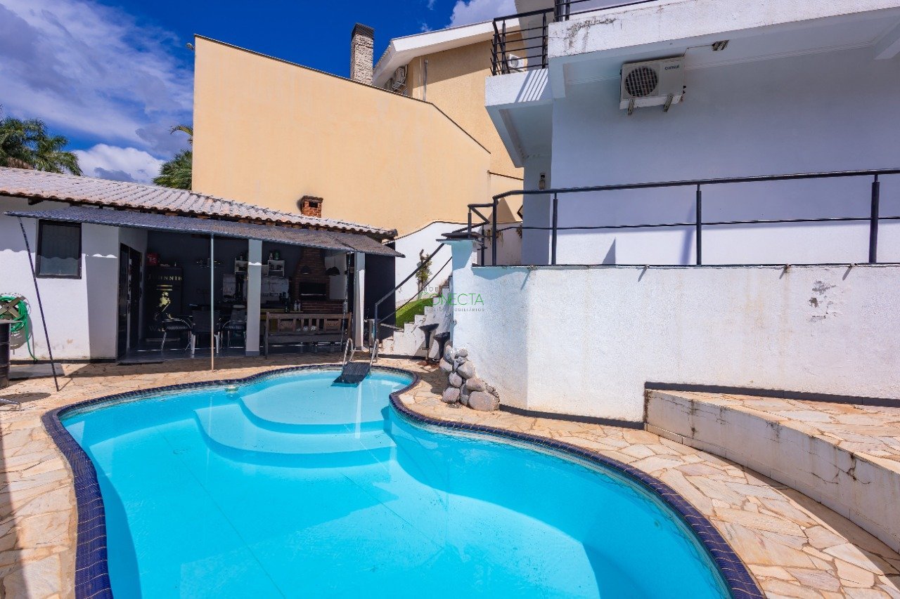 Casa em condomínio com 4 quartos à venda. O imóvel possui 4 quartos, sendo 1 suíte máster com ar condicionado e 1 suíte com ar condicionado, 1 sala de jantar, 1 sala de estar, uma de TV com ar condicionado, escritório, cozinha com armários planejados, 2 lavabos, garagem para três carros e box. Para receber seus amigos e familiares, conta com uma área de lazer gourmet com churrasqueira e piscina, com 435,26 metros de terreno. Situado em uma região tranquila, o condomínio fica a poucos minutos de carro de pontos comerciais e áreas de lazer. O local conta com área de lazer com piscina, sauna, playground e churrasqueira, salão de festas, quadra, campo de futebol e portaria 24 horas, garantindo um ambiente seguro e tranquilo para os moradores.