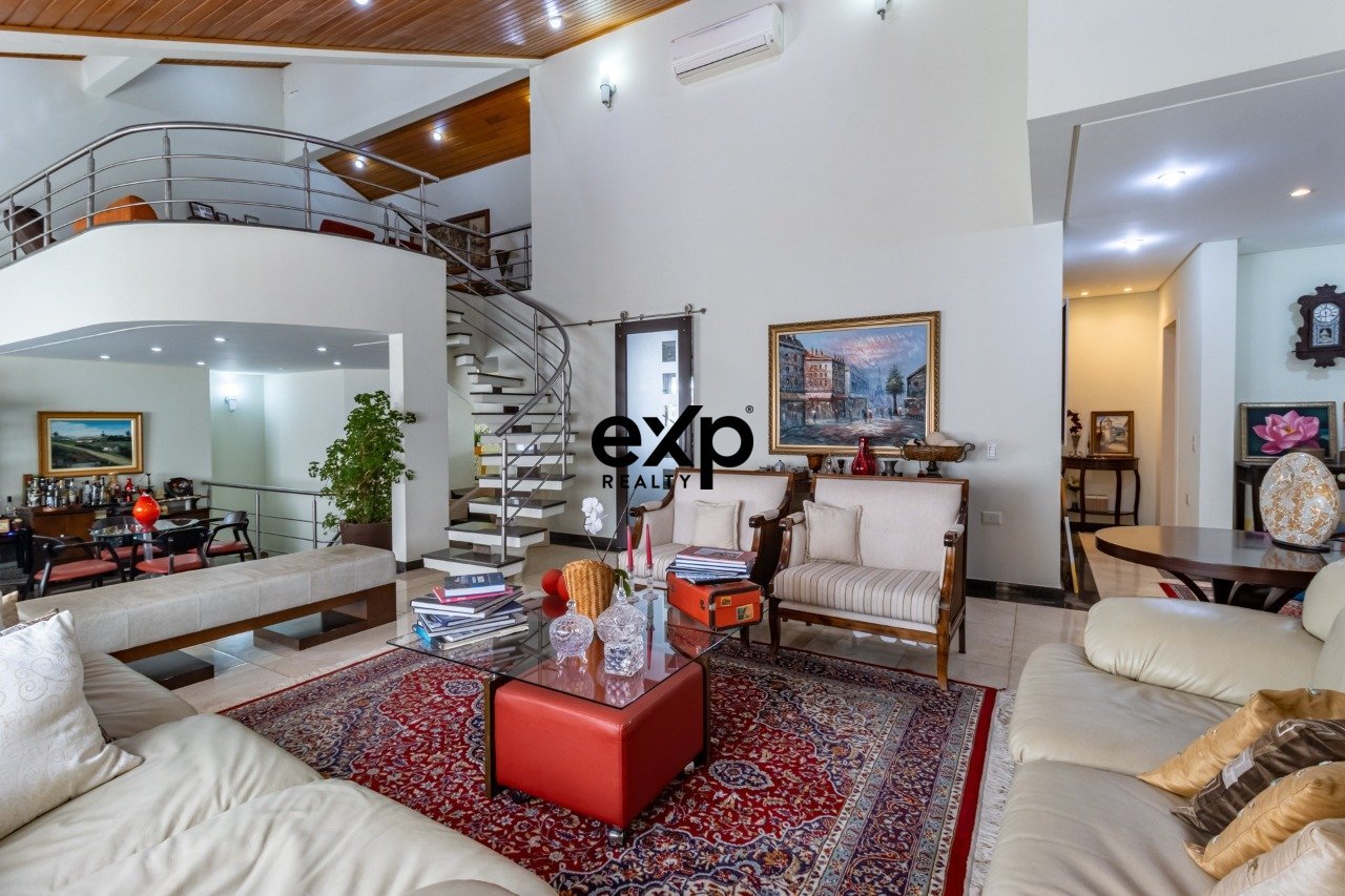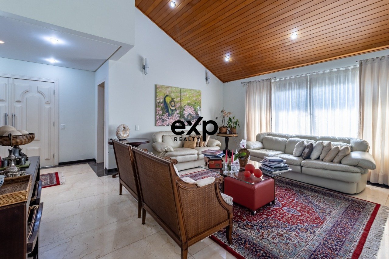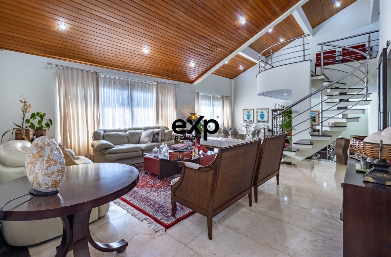 Casa à venda com 5 quartos sendo 5 suítes, uma delas para dependência de empregada. Esta casa está muito bem localizada dentro do condomínio e com manutenção em dia. Impecável, eu diria. São 04 salas, sendo no térreo sala de estar e jantar. Na parte superior, uma sala reservada de lareira bem aconchegante. Na parte inferior, e com total privacidade, uma bela sala de TV. Neste mesmo nível, temos mais 2 suítes para hóspedes ou filhos em idade mais independente. Amplo espaço gourmet bem iluminado e com saída para a varanda da piscina, onde temos as espreguiçadeiras e deck para boas horas de descanso. Ao lado, temos um espaço todo em vidro para implantar uma academia de ginástica e contemplar a piscina e o paisagismo, com banheiro que atende à piscina neste mesmo espaço da academia. Subindo, temos no nível da entrada da casa o acesso à cozinha, copa bem reservada, a lavanderia, a suíte da empregada e saída para o quintal com muita luz e ventilação. Descendo alguns degraus, chegamos às duas suítes da casa, com closet, laminado de madeira e excelente varanda que dá para contemplar a piscina. Suíte master com belíssima banheira de hidromassagem, com muita iluminação e um closet espaçoso. Sala de TV na suíte master dando muita privacidade ao casal. Hall de entrada com linda porta imponente e lavabo ao lado. Porte-cochère amplo que facilita o embarque e desembarque dos moradores da casa, protegendo-os do sol ou dos dias chuvosos. Mais uma bela garagem coberta, que dá acesso à casa e ao espaço gourmet, facilitando os dias de festa. Venha conhecer este belo imóvel muito bem construído pelos proprietários.