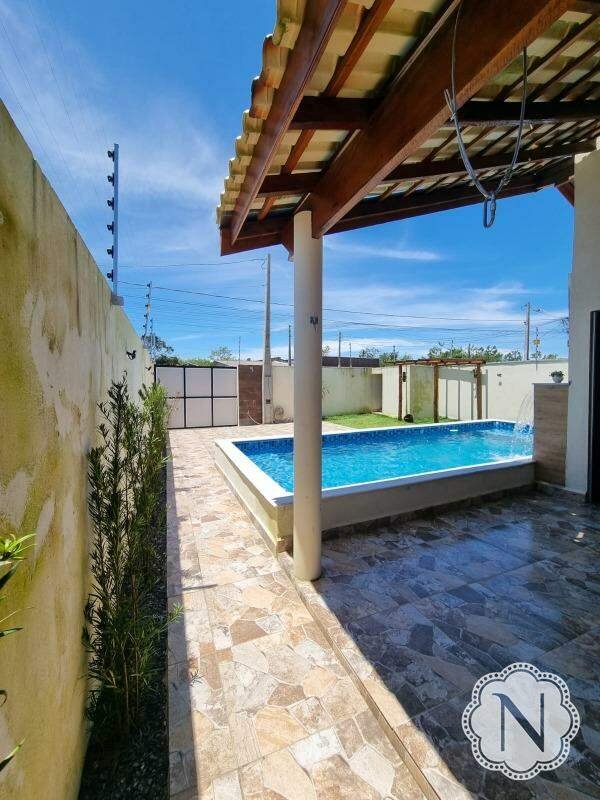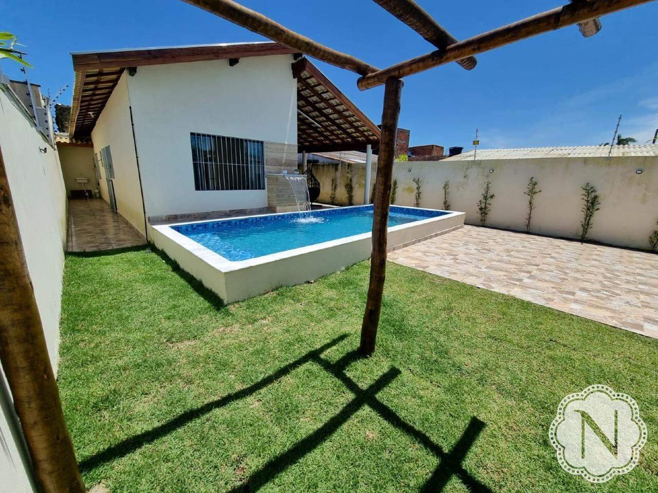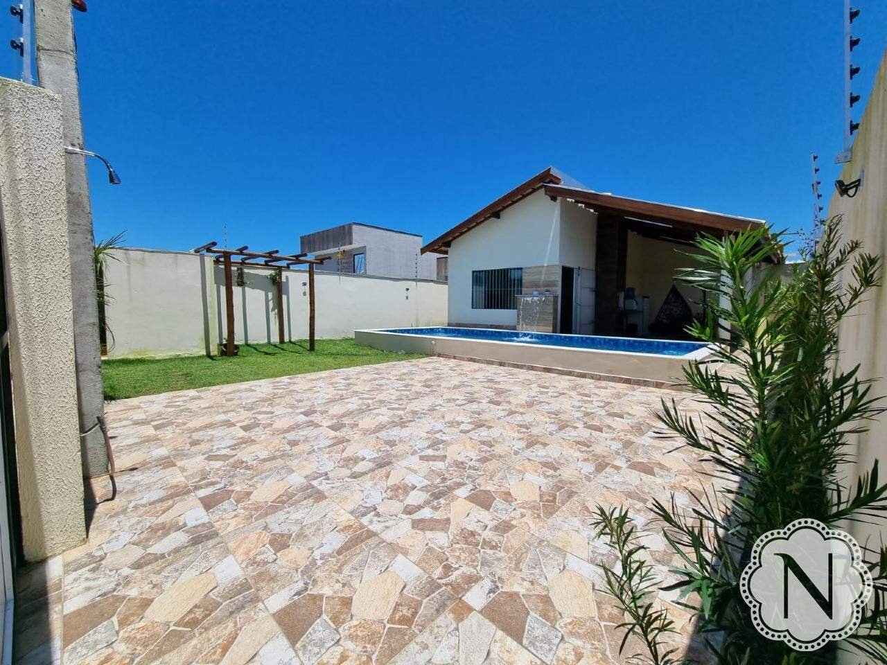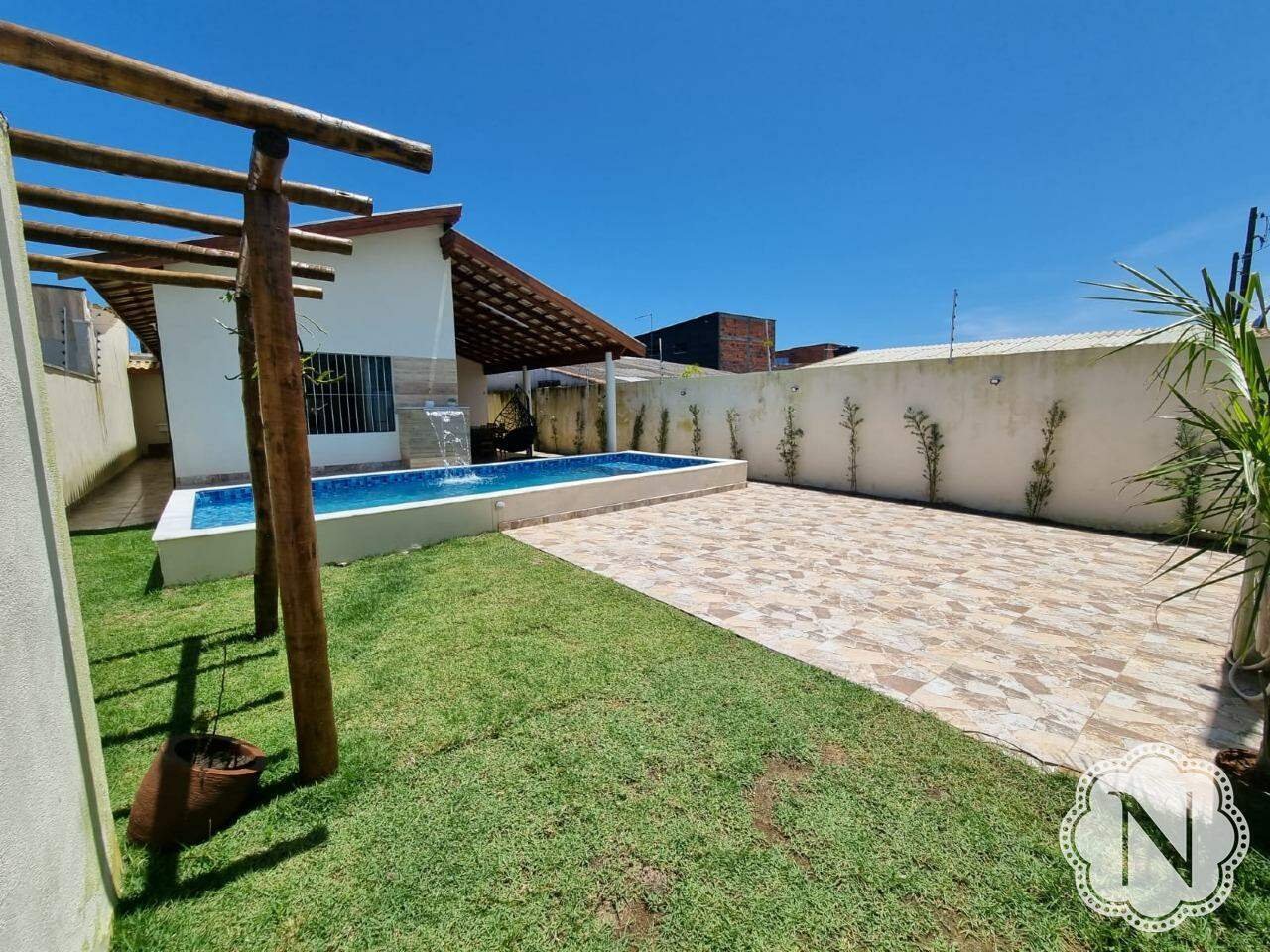 Esta espaçosa casa, situada em um lote inteiro, oferece uma série de comodidades para um estilo de vida confortável e agradável. O quintal é destacado por uma piscina convidativa e uma área de churrasqueira. O paisagismo cuidadosamente planejado embeleza o ambiente, enquanto corredores pavimentados nas laterais facilitam a circulação pela propriedade. A casa inclui 02 quartos, um dos quais é uma suíte com banheiro privativo. A sala de estar é integrada com a cozinha, criando um ambiente moderno e funcional. A área de serviço oferece comodidade para tarefas domésticas, e um lavabo na área externa proporciona conveniência adicional. A propriedade também conta com espaço de estacionamento para até 04 carros; o jardim bem cuidado adiciona charme à paisagem, e um pergolado oferece um local sombreado e agradável para relaxar ao ar livre.