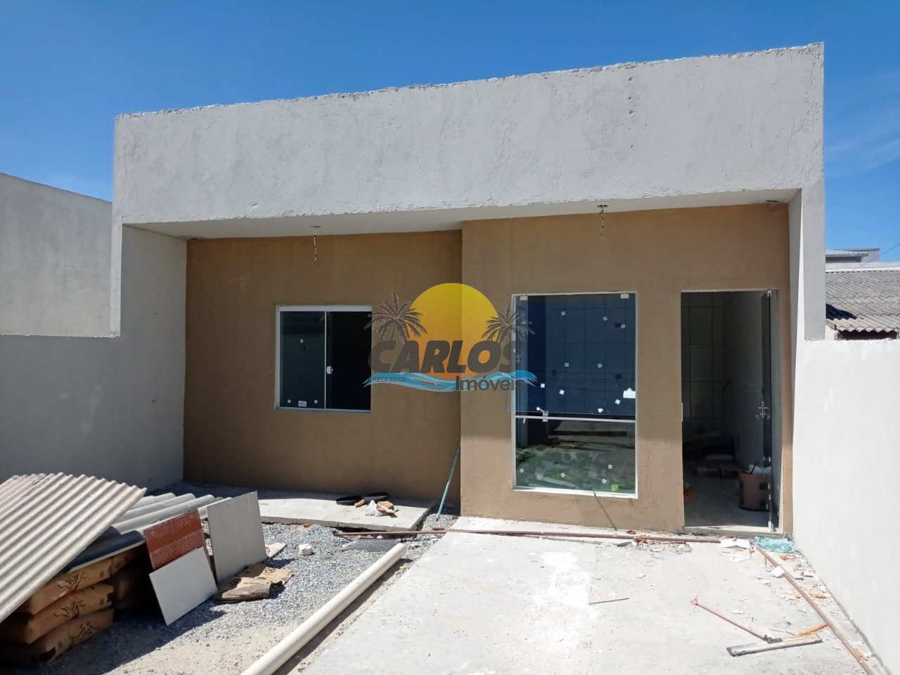 Escriturado Registrado e em fase de Averbação. Casa nova em alvenaria com aproximadamente 56,00 m² de área construída. Distribuição: - Sala de estar/jantar - Cozinha - 03 quartos (sendo 01 suíte) - 01 Banheiro social - 01 vaga de garagem Localizado em região de moradores, próximo de mercados, farmácias, escolas, posto de saúde, em região agradável e tranquila. FACE NORTE ENTREGA PREVISTA PARA Fev/2023 A apenas 350 metros da praia.