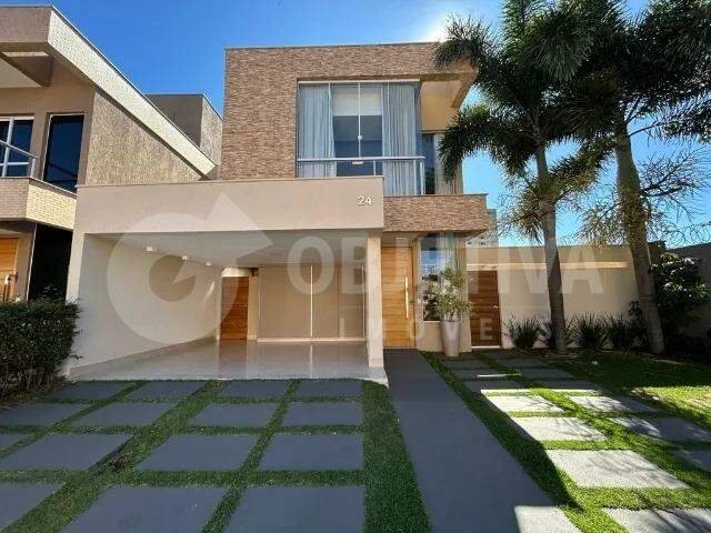 Linda casa estilo sobrado no bairro planejado Granja Marileusa, todo planejado com móveis e linda iluminação. São 3 suítes com aparelhos de ar condicionado. Cozinha com bancada de pedra e cooktop, amplo espaço gourmet com bancada e churrasqueira, lavanderia fechada, jardim de inverno, piscina aquecida com hidro, ducha, hall com roupeiro, possui lavabo na sala, 2 vagas de garagem coberta com armário na garagem, 2 lagos de carpas. Condomínio com lazer completo: piscina, quadra, sauna, academia, mercadinho 24h, espaço crossfit, salão de festas, quiosque com churrasqueira, possui energia fotovoltaica.