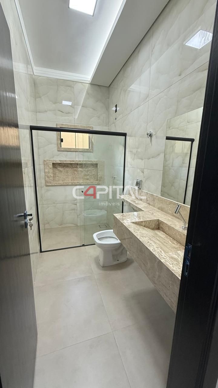 01 Sala 01 Cozinha 03 Quartos sendo 01 suíte 02 Banheiros Espera para Split Garagem para 02 carros Portão eletrônico Interfone Área de serviço independente Corredor lateral amplo Piso em porcelanato e cerâmica Acabamento de primeira linha