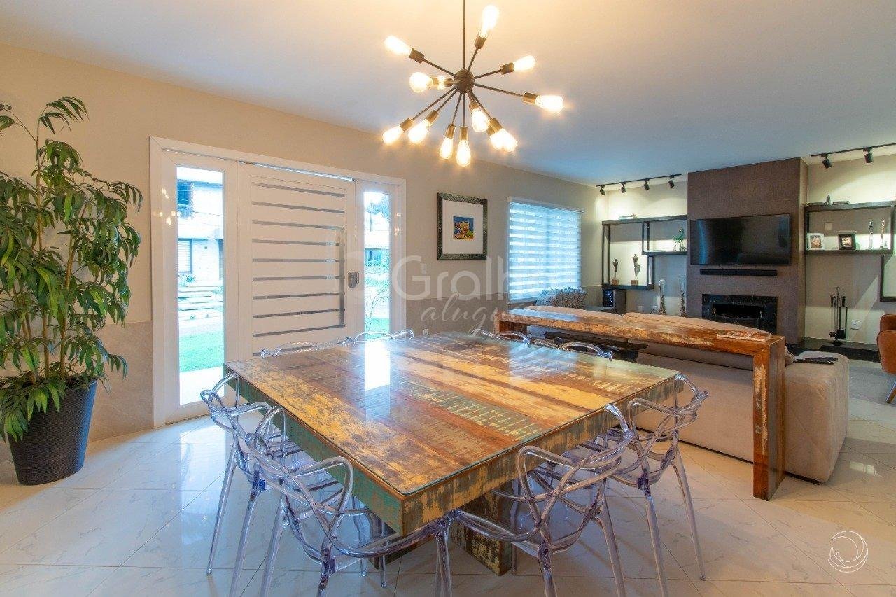 Excelente casa com 5 quartos em Sambaqui! Imóvel com 328m² de área privativa, dois pavimentos e mobiliado. No pavimento térreo há 3 quartos, sendo uma suíte. Sala com sofá, lareira, mesa para 8 lugares, cozinha com móveis planejados e mesa de 4 lugares. No pavimento superior há duas suítes, sendo uma delas master com closet e terraço e ambas climatizadas. O imóvel possui área gourmet com churrasqueira e piscina. Localizado a poucos metros do mar em região calma, tranquila e majoritariamente residencial. O condomínio possui portaria remota, zeladoria, campo de futebol, lagos, playgrounds e salão de festas. Transparência em primeiro lugar. Os valores de condomínio e taxas são estimativas sujeitas a variações. Vale lembrar que, além do valor do aluguel, o locatário também assume responsabilidades como o pagamento das despesas condominiais ordinárias, IPTU, coleta de lixo, seguro contra incêndio, consumo de energia elétrica e demais encargos previstos na Lei do Inquilinato. Em caso de dúvidas, conte com a equipe para esclarecer tudo com clareza e confiança.