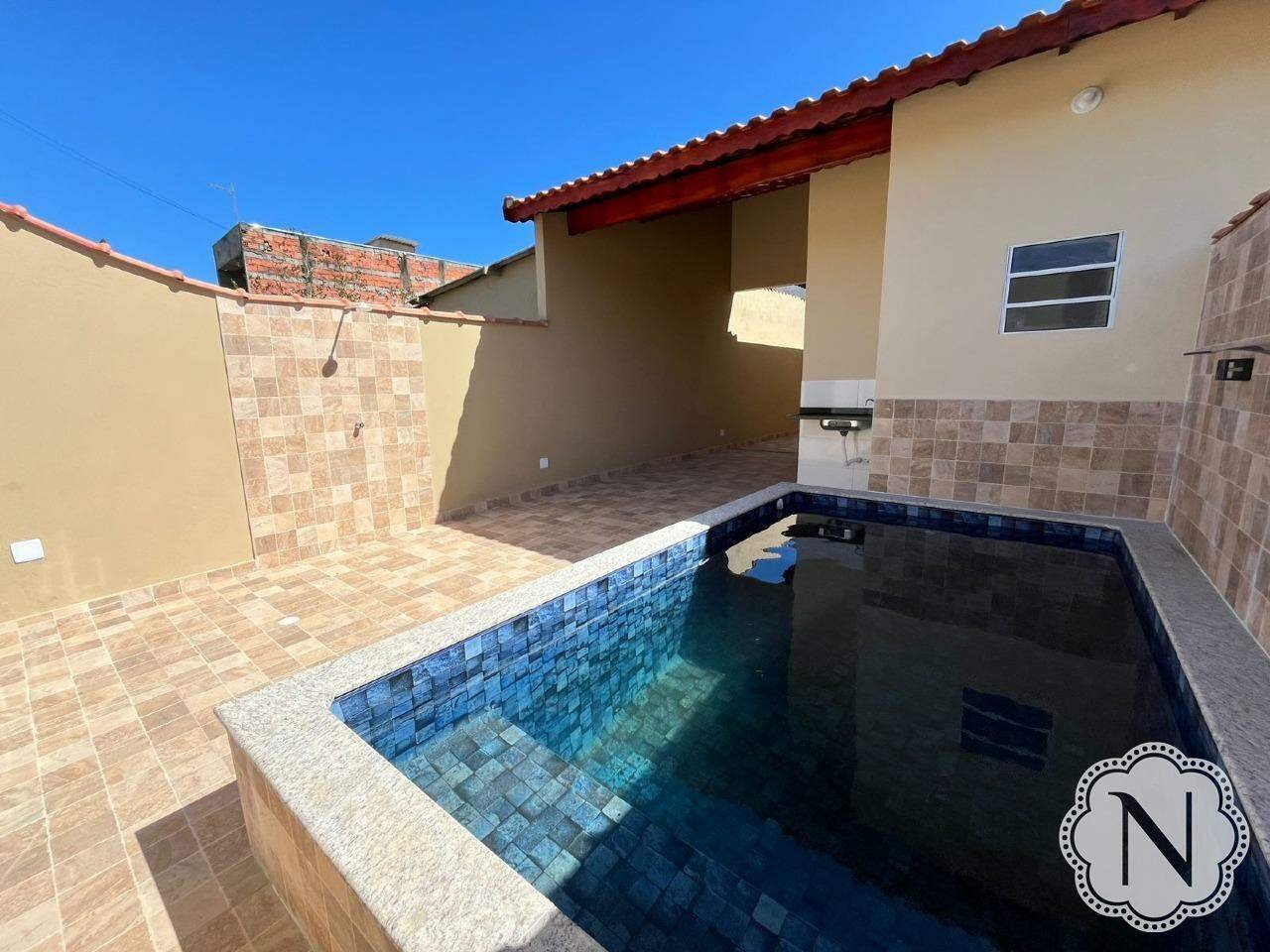 Casa nova com fino acabamento em bairro residencial, rua pavimentada e próxima a todos os comércios da região! Seu futuro lar possui: Piscina com cascata Lavabo externo Sala integrada com a cozinha 2 quartos sendo 1 suíte Área de serviço 2 vagas de garagem Imóvel conta com portão de alumínio podendo ser automatizado, iluminação em led, porcelanato! Agende sua visita e tenha a garantia do melhor atendimento!