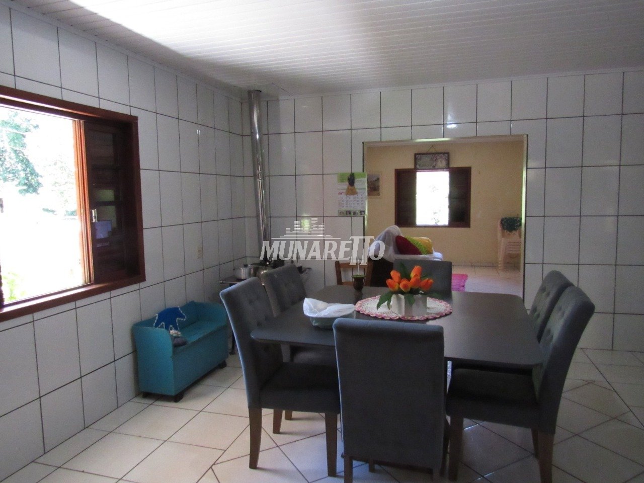Terreno com 733,00 m² e casa mista com 180 m². Possui: - 3 dormitórios, - 1 sala de estar/TV, - 1 cozinha grande toda revestida em cerâmica, - 1 banheiro, - 1 despensa, - 1 lavanderia e 1 banheiro na área externa - varanda da casa, - Garagem para 1 automóvel e churrasqueira, conjugados.