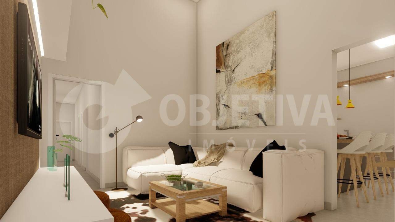 Casa nova disponível para venda no bairro Novo Mundo em Uberlândia, são 182 m² de terreno e aproximadamente 134 m² de área construída que dispõe de 3 quartos sendo 1 suíte com closet, sala de estar e tv com pé direito duplo, cozinha gourmet com churrasqueira, área de serviço, banheiro social com box e 2 vagas de garagem descoberta. (Previsão de entrega início de setembro de 2025), aceita financiamento. Entre em contato, vamos te ajudar na negociação.