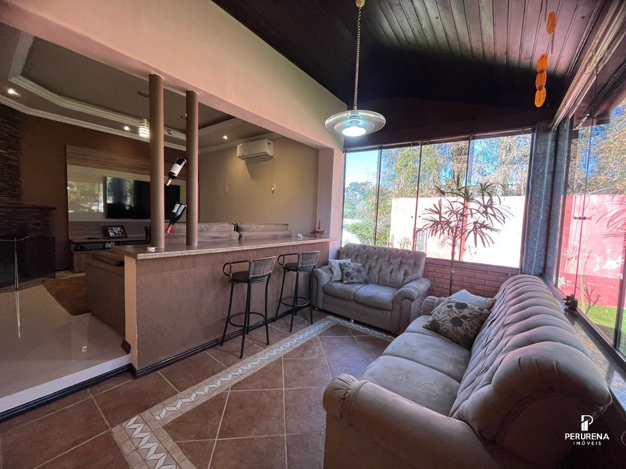 Uma linda casa totalmente reformada em pátio de 1.800 m² com paisagismo maravilhoso! 3 dormitórios (sendo um deles com closet), sala em 3 ambientes com lareira, sala de jantar integrada a cozinha com janelões de vidro com vista ao pátio, salão de festas com churrasqueira e garagem. Pátio com piscina! Próxima ao Clube Campestre da nossa cidade! É como morar num sítio!