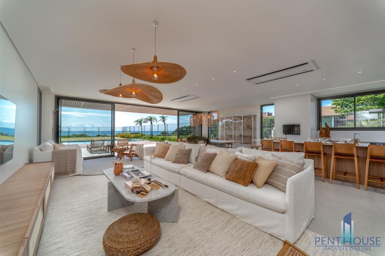 Casa na Praia do Estaleiro em Balneário Camboriú Situada na Praia do Estaleiro, um verdadeiro paraíso particular localizado a menos de 20 minutos do centro de Balneário Camboriú, o imóvel reúne sofisticação, personalidade e arquitetura impecável em cada detalhe. Toda mobiliada e finamente decorada com estilo Casa de Praia, conta com 4 suítes, sendo 2 suítes de frente para o mar, perfeita para apreciar a natureza e a calmaria de uma praia deslumbrante. Com ambientes amplos e bem iluminados, você pode viver o luxo e o bem-estar de um imóvel diferenciado com vista exclusiva. O imóvel conta ainda com uma casa de apoio que possui área privativa de 48,61 m², suíte + 1 dormitório, banheiro social, salas de estar e jantar integradas, além de área de serviço externa. 5 Dormitórios (4 Suítes) 4 Vagas 458 m² de Área privativa 1.385 m² de Área total Possui varandão com piscina Paisagismo em todo o terreno Casa principal Garagem Casa do caseiro Dois pavimentos Cozinha e sala de jantar integrados Escada de acesso ao pavimento superior Entrada social e de serviço Dormitório Banheiro social Área de serviço 2 suítes de frente mar com ampla sacada Estar íntimo