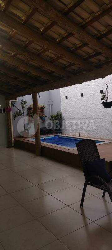 Ótima casa de esquina à venda no bairro Chácaras Tubalina. Imóvel em um terreno de 250,64m². Dispondo de uma área construída de 150m² com 3 quartos com armários, sendo um deles suíte com closet. Banheiro social, sala em 2 ambientes, cozinha com armários planejados, área de serviço separada, varanda gourmet com churrasqueira a carvão e piscina aquecida, garagem para 4 carros. Ao lado da casa, no mesmo terreno, tem um barracão com 80m² frente para outra rua. Um ótimo lugar para uma renda extra. Vamos te ajudar na negociação.