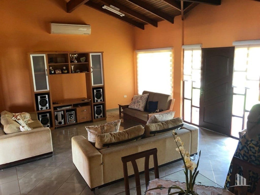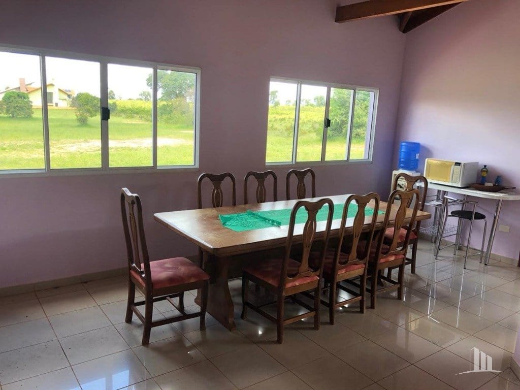 Casa ampla, com cômodos arejados, sendo uma suíte master e dois quartos, lavabo, banheiro social, sala de televisão, sala de jantar, cozinha, depósito, churrasqueira, banheiro no lazer, piscina, quadra de futebol gramado. Terreno 1000m2, construção 360m2, equipada com aquecimento solar nos chuveiros e torneiras. Ideal para você se refugiar nos finais de semana e feriados com amigos e família. Parque de lazer e esportes aquáticos com uma represa e infraestrutura completa para a prática de esqui aquático e jet ski. Município de Jaraguari, MS, área do imóvel, 32 há, 5966 metros.
