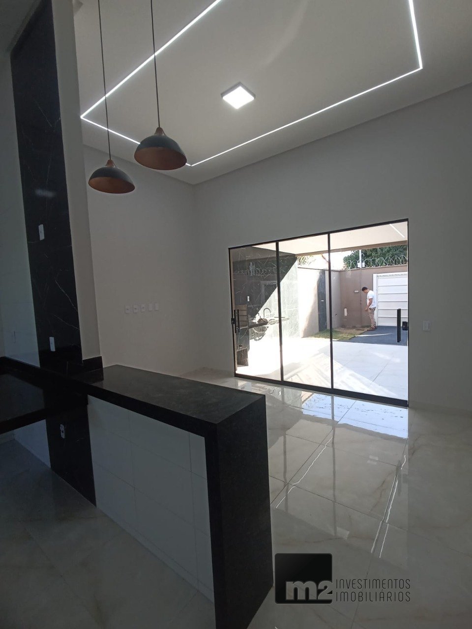 Casa de rua no Setor Barravento, com 108 m² de área construída, composta por 3 quartos, sendo 1 suíte, sala de estar/TV, cozinha americana, área de serviço, área gourmet e garagem. O imóvel conta com acabamento em porcelanato, laje maciça em toda a extensão e teto rebaixado em gesso tabica, com projeto luminotécnico que valoriza cada ambiente. A sala é integrada à cozinha, que dispõe de bancada em mármore Verde Ubatuba, garantindo excelente aproveitamento de espaço e um toque de sofisticação. As esquadrias em blindex estão presentes em portas e janelas, enquanto os banheiros possuem bancadas em mármore Bege Bahia com cuba embutida. As portas internas dos quartos e banheiros são em madeira, proporcionando charme e conforto. A casa é voltada para o sol da manhã e oferece área de serviço, área gourmet, duas vagas de garagem, muro com concertina e portão elétrico. Excelente localização, próximo a Av. C, Av. Carrinho Cunha, Limas Bar 2 e Parque Municipal Fonte Nova, a 9 minutos do Passeio das Águas Shopping, com fácil acesso às principais vias da região.