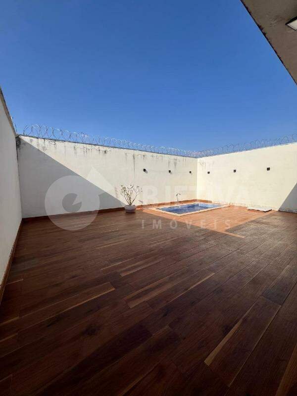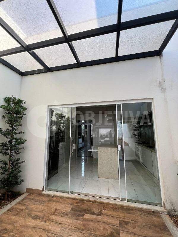 Casa estilo sobrado disponível para venda no bairro Jardim Patrícia em Uberlândia, são 300m² de terreno e aproximadamente 165,65m² de área construída que dispõe de 3 quartos, sendo 1 suíte com closet todo com móveis planejados e ar condicionado, cozinha com pia e bancada em granito e armários, sala de TV com painel, banheiro social com box e armários, lavanderia completa com planejados, área gourmet com churrasqueira e piscina, jardim de inverno, piso superior com 1 escritório, sacada com linda vista, 2 vagas de garagem cobertas.