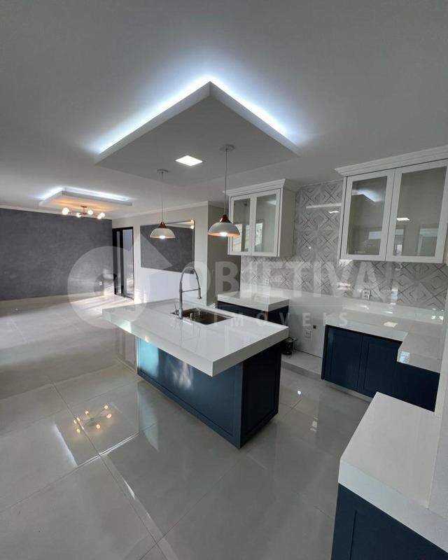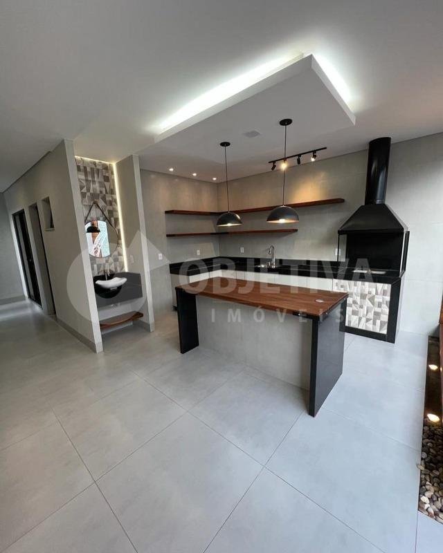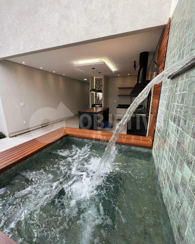 Belíssima Casa disponível à venda no Bairro Santa Mônica, muito bem localizada, acabamento de altíssima qualidade, projeto moderno e contemporâneo, fachada imponente. São 300m² de área construída dispondo de 4 quartos, sendo duas Suítes - a principal de casal com closet montado. Sala em 2 ambientes conjugada com a cozinha no conceito moderno de ambientes integrados, e toda planejada com armários. Espaço Gourmet com Churrasqueira. Jacuzzi Spa aquecida com cascata. Portas automatizadas. Aquecimento Solar. Fino acabamento, lindos jardins. Terreno de 360m².
