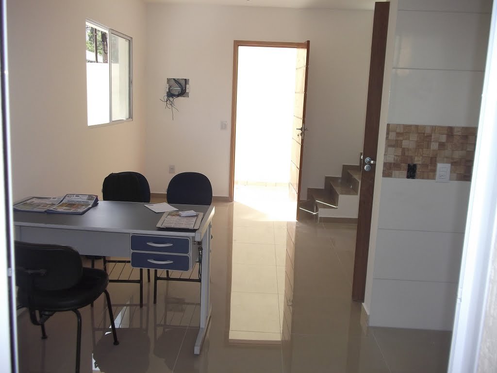 São 08 Sobrados novos com piso porcelanato e frio, 2 dormitórios, banheiro, sala, varanda, cozinha, área de serviço, lavabo, pequeno quintal. Com 1 vaga de garagem o valor é R$350.000, com duas é R$380.000.
