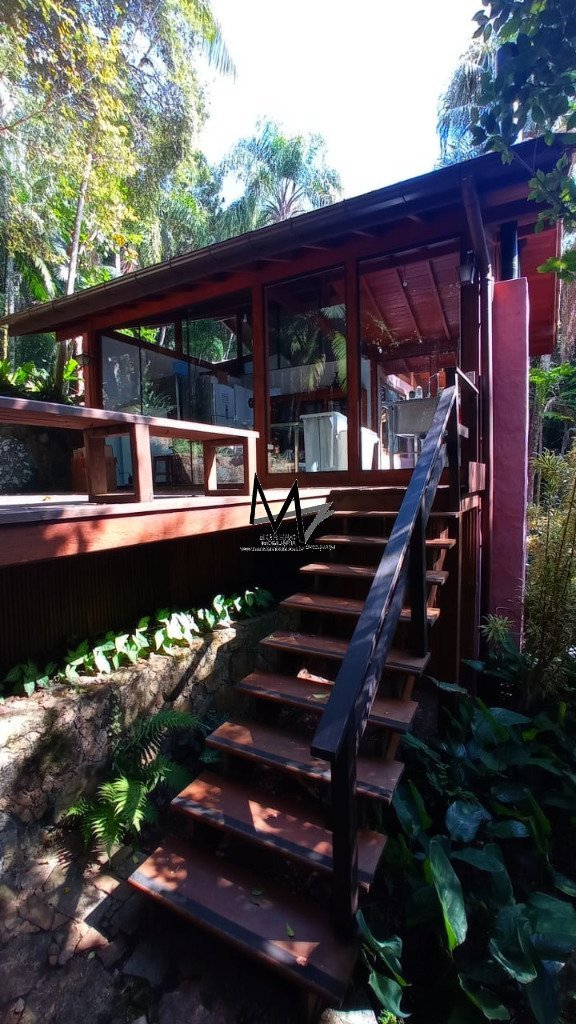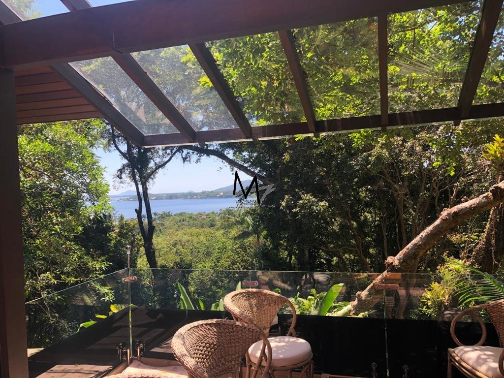 Casa em condomínio à venda e para alugar na Lagoa da Conceição. Casa semimobiliada em um terreno em meio à Mata Atlântica, com vista panorâmica para a Lagoa da Conceição e Praia da Joaquina. Com piso laminado nas áreas privativas e porcelanato nas áreas sociais, com decks de madeira. A Casa 1 conta com 1 suíte master com closet e um escritório, 1 suíte e mais 2 quartos que compartilham 1 banheiro. Todos os ambientes possuem ar condicionado e telas anti-mosquito. Dispõe também de sala de leitura, sala de estar, sala de TV, sala de jantar interligada à cozinha e área de lavanderia. Na área externa se encontra uma churrasqueira interligada com a varanda e área de SPA, com uma banheira de hidromassagem, deck e jardim iluminado. O acesso à casa se dá por escadas externas ou elevador pela garagem. Conta com sistema de alarme com sensores de movimento em todos os ambientes da casa. A Casa 2 conta com 1 suíte com closet e vista para o mar, 1 banheiro, sala de estar com lareira, sala de estar integrada com a cozinha, lavanderia com acesso ao deck com bancos integrados e churrasqueira, quintal cercado nos fundos ideal para pets, jardim todo iluminado. Pronta para quem quer morar com conforto e tranquilidade em contato direto com a natureza. Agende sua visita!