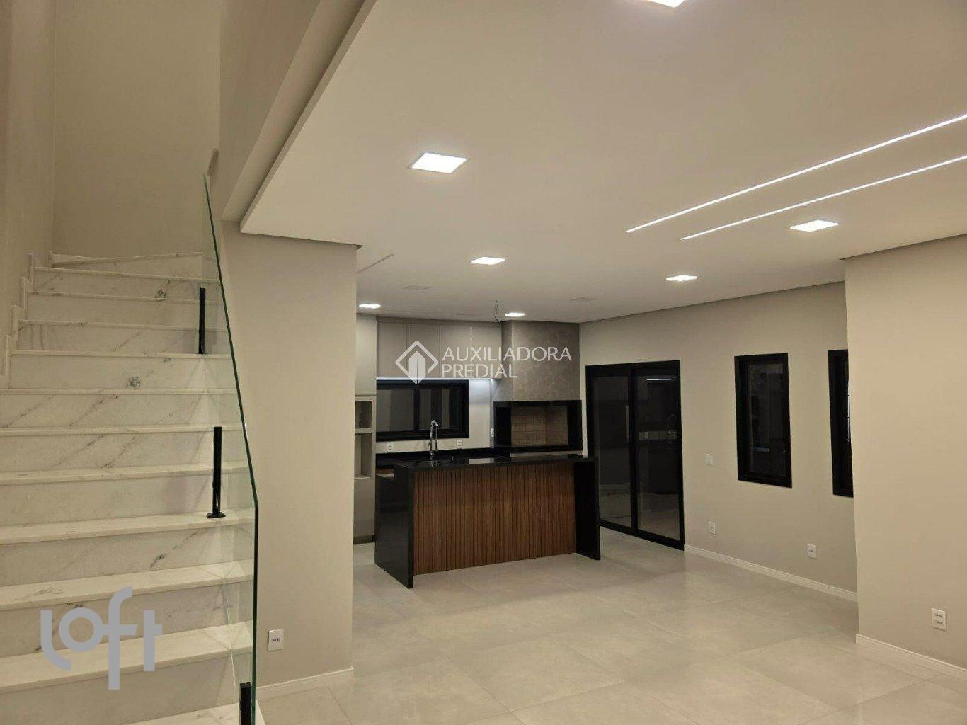 Casa sobrado com 3 quartos, sendo 1 suíte bem localizado, com 136 m², e 2 vagas de garagem,. Imóvel com excelente acabamento, pensado em cada detalhe, banheiros entregues com bancadas e revestimento porcelanato, mármore na escada, cozinha com ilha gourmet, churrasqueira com acabamento em granito, dormitórios com piso laminado, e área social. Móveis em todos os banheiros, área de serviço, cozinha e Ilha. Pavimentação externa com pedra basalto, esquadrias automáticas nas portas janelas em alumínio na cor preta, e portas internas de madeira. Bairro próximo da faculdade Ulbra e a todas as conveniências para o seu conforto e segurança.