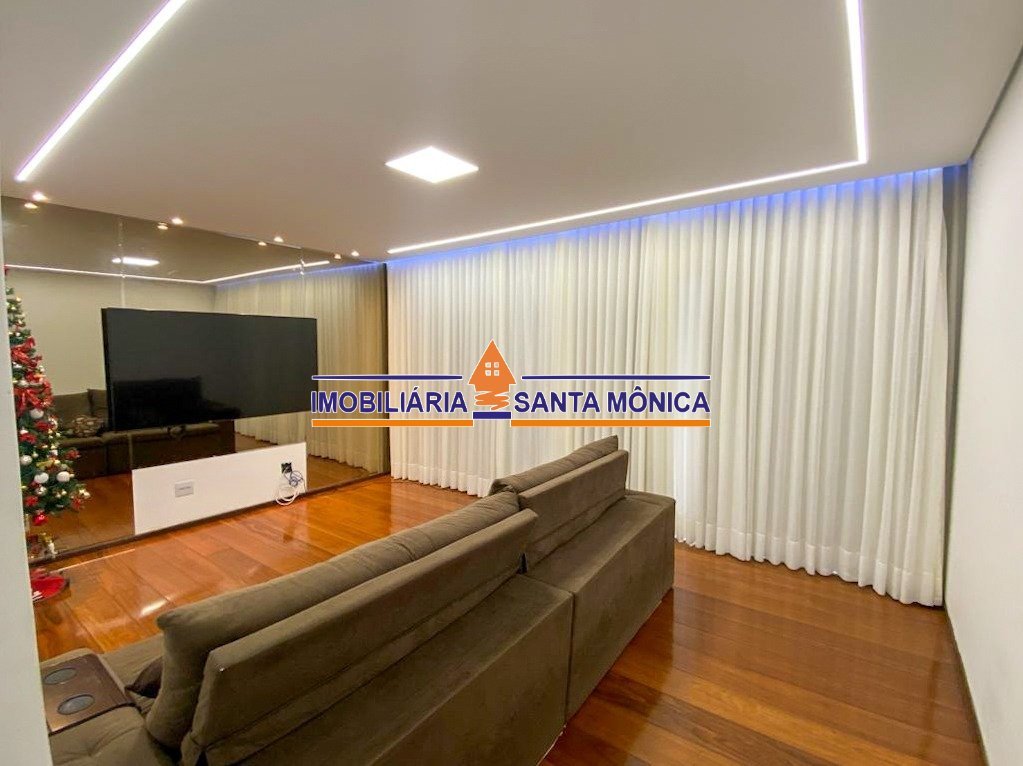 Casa 4 quartos - Santa Mônica A sua futura residência é uma casa de dois pavimentos, sendo o nível da rua com as vagas de garagem cobertas. No pavimento de cima possui três quartos, sendo dois com suíte, banheiro social, sala de TV, sala de jantar conjugada com a cozinha, área de serviço separada, quintal, área gourmet, um lavabo e uma edícula no fundo com uma sala embaixo e um quarto na parte de cima ideal para home office/escritório. Condições de pagamento: à vista, estuda receber imóvel de menor valor.