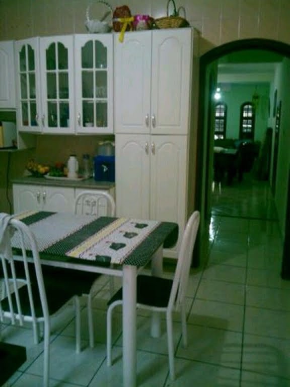 Sobrado com 3 dormitórios, sala de estar e jantar, cozinha, área de serviço, banheiro com box de vidro, área de churrasqueira com mesa de sinuca, ventilador de teto na sala, corrimão de madeira na escada para os quartos, casa toda em piso frio, 2 vagas de garagem com portão automático. Próximo à padaria, mercado, farmácia e ponto de ônibus. Possui escritura, estuda veículo como parte do pagamento, aceita financiamento.