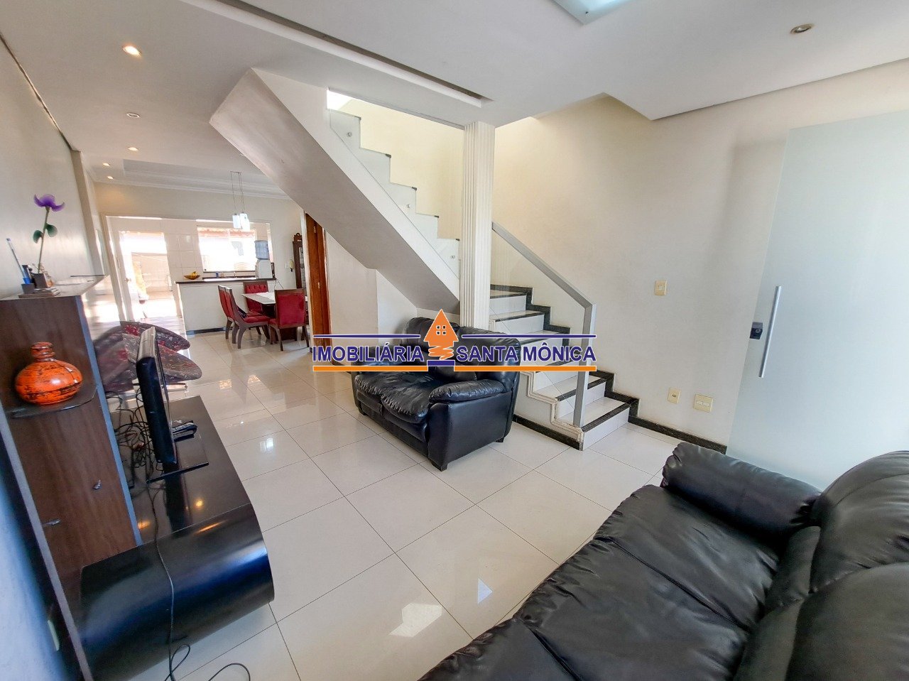 Casa 3 quartos - Santa Mônica A sua futura residência é uma casa de dois pavimentos em lote de 170,39m² sendo o nível da rua com sala de tv, lavabo, sala de jantar, cozinha com armários e fogão cooktop, quintal descoberto, área de churrasqueira, banheiro nos fundos, quarto de despejo, área de serviço coberta, ducha, corredor lateral além de uma vaga de garagem na frente. No segundo pavimento fica a parte íntima com três quartos sendo um com suíte e varanda além de um banheiro social. Venha morar em uma das melhores localizações do bairro Santa Mônica com todo o comércio próximo a pé tais como supermercados, padarias, agências bancárias, drogarias e muito mais! Condições de pagamento: aceita financiamento/FGTS.