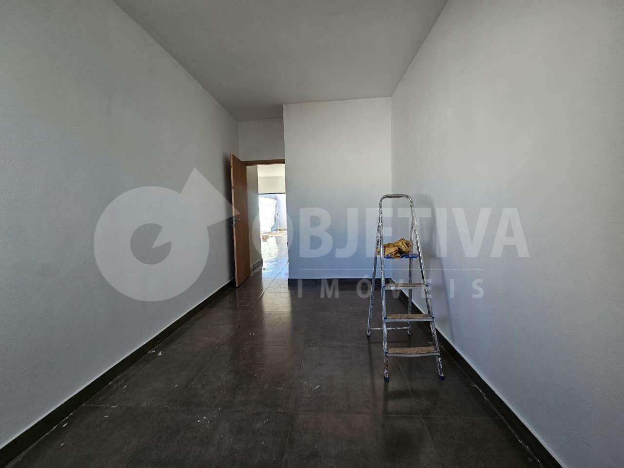 Casa disponível para aluguel no bairro Maravilha, em Uberlândia, com aproximadamente 80 m² de área construída, composta por sala ampla, cozinha com bancada, um banheiro social, dois quartos sendo uma suíte, garagem para dois carros, área de serviço e quintal nos fundos. Possui pintura nova, piso em porcelanato e box em vidro blindex em todos os banheiros. Imóvel novo, primeira locação.