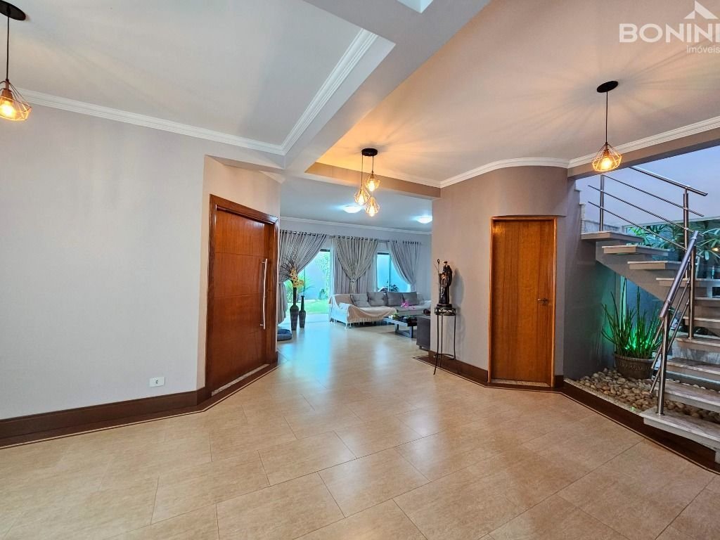 Sobrado com 3 dormitórios com móveis planejados, sendo 1 suíte com closet e sacada, banheiro social, escritório, piso térreo com 3 amplas salas, TV, estar e jantar, lavabo, cozinha planejada, quintal com espaço para piscina, banheiro e área de serviço, garagem para 4 carros sendo 2 cobertas, piso cerâmica e porcelanato. Aceita financiamento e estuda permuta por casa de menor valor com 3 dormitórios. Maiores informações e visitas.