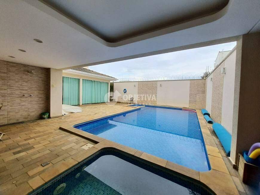 Belíssima casa residencial disponível para venda no bairro Jardim Karaíba com 300 m² de área construída e 400 m² de área total, sendo sala ampla em 2 ambientes, sala de TV, sala de jantar, 4 quartos sendo 2 suítes montadas, banheiro social, lavabo, escritório, cozinha planejada com armários, lavanderia completa, varanda ampla com espaço gourmet, churrasqueira a carvão, piscina aquecida com hidromassagem e 4 vagas de garagem. Entre em contato, vamos te ajudar na negociação.